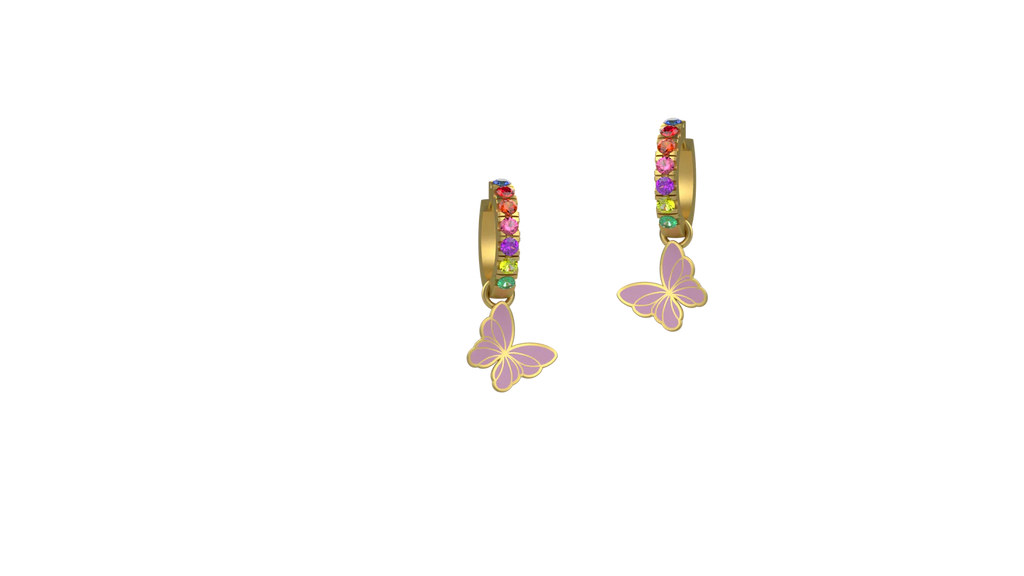 Orecchini Farfallina Dei Colori Rosa Argento 925, Pietre Multicolor NAN0582