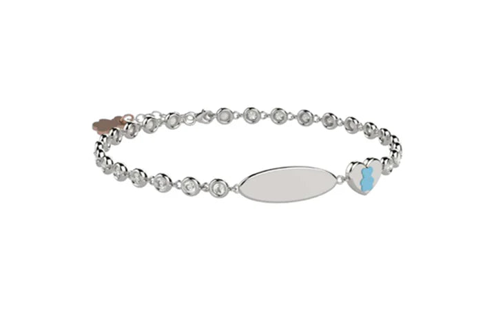 Bracciale Tennis in Argento 925 Con Pietre Azzurre e Targhetta Incidibile NAN0514