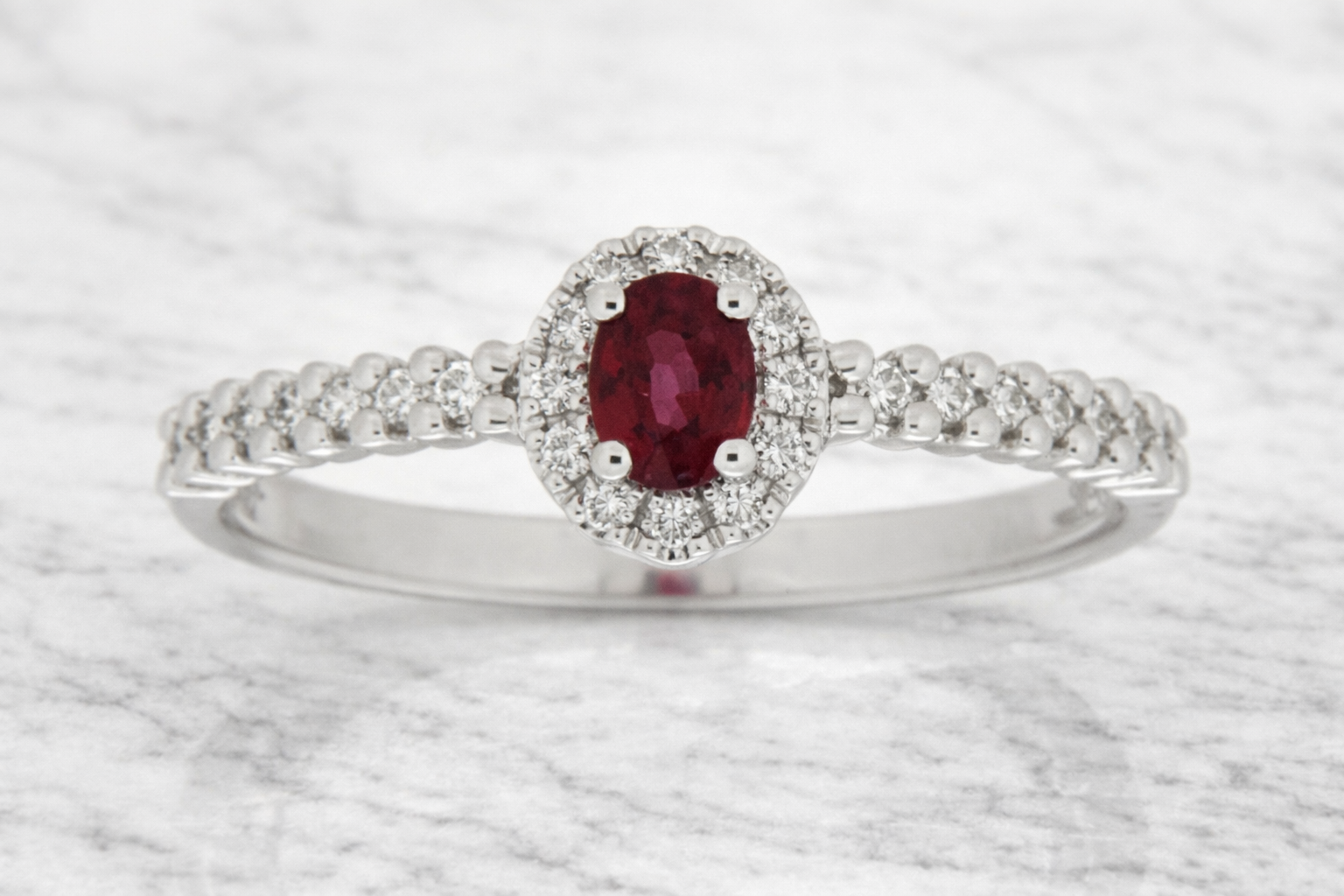 Anello in Oro Bianco 18kt con Rubini 0.20 ct e Diamanti F/G VS 0.17 ct AB16796R