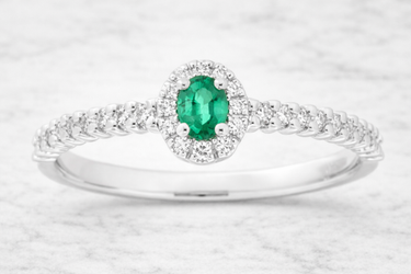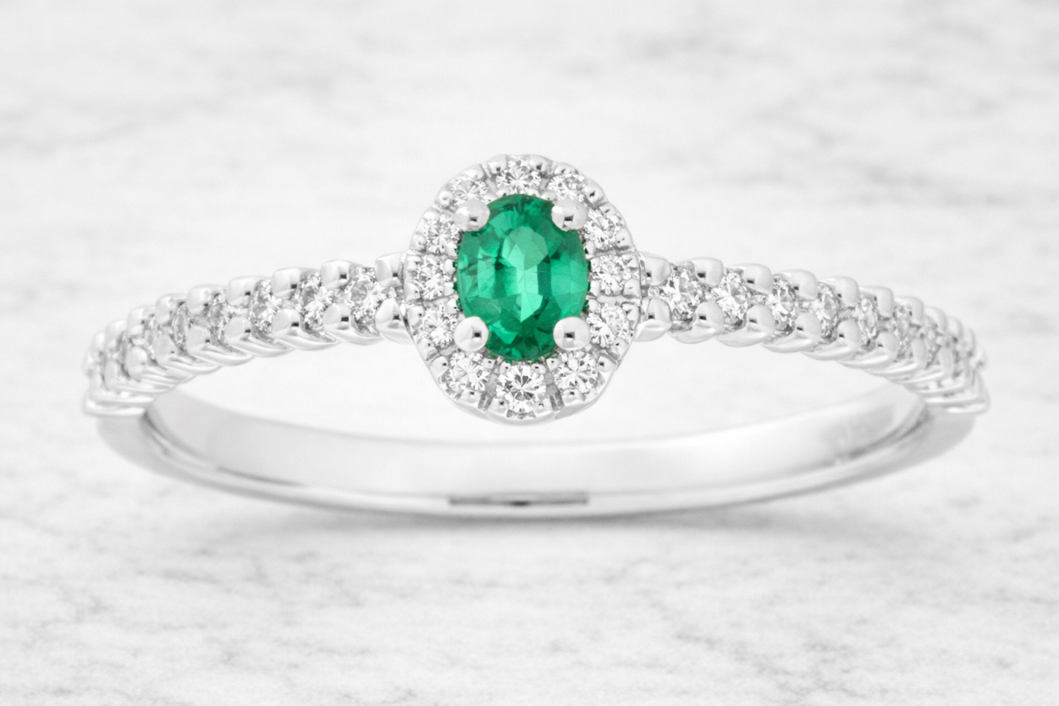 Un gioiello raffinato che esprime eleganza e femminilità. Questo anello in oro bianco 18kt è impreziosito da uno smeraldo naturale da 0,19 carati, dal colore verde intenso e luminoso, simbolo di armonia e rinascita.