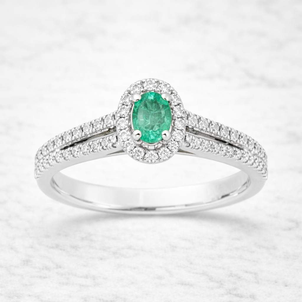 Al centro risplende uno smeraldo naturale da 0,31 ct, scelto per il suo colore verde intenso e vibrante, simbolo di rinascita, equilibrio ed eleganza senza tempo.