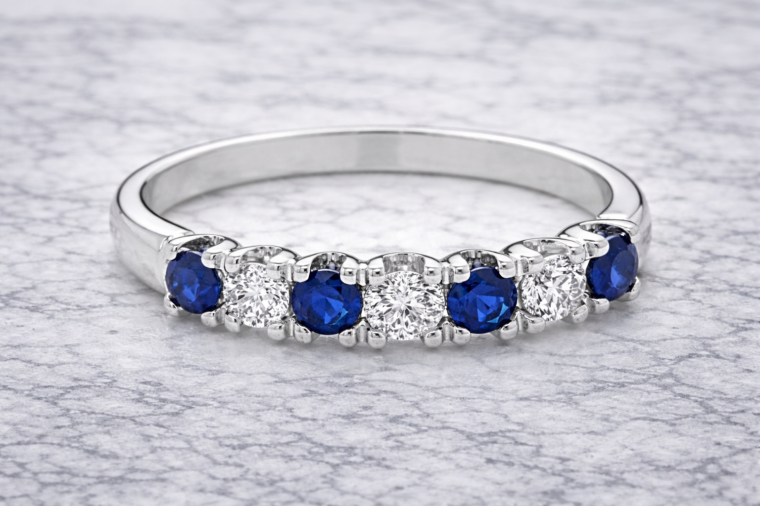 Anello in Oro Bianco 18kt con Diamanti F/G VS 0,23 ct e Zaffiri 0,35 ct AB14136DZ