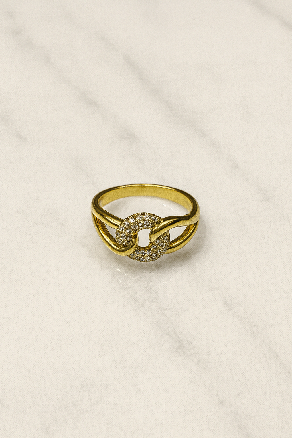 Al centro, due maglie si intrecciano elegantemente dando vita a un punto luce brillante e raffinato, ideale per valorizzare qualsiasi outfit — dal più casual al più elegante.