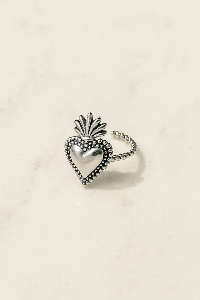 💖 Anello Sacro Cuore in Argento 925 Regolabile – Simbolo d’Amore e Protezione 💖