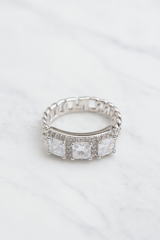 💍 Anello Trilogy Taglio Baguette in Argento 925 Regolabile – Eleganza Geometrica e Brillantezza Assoluta 💎