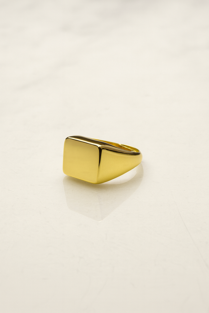 💛 Anello Chevalier Quadrato in Argento Dorato 925 – Eleganza Decisa e Moderna 💛