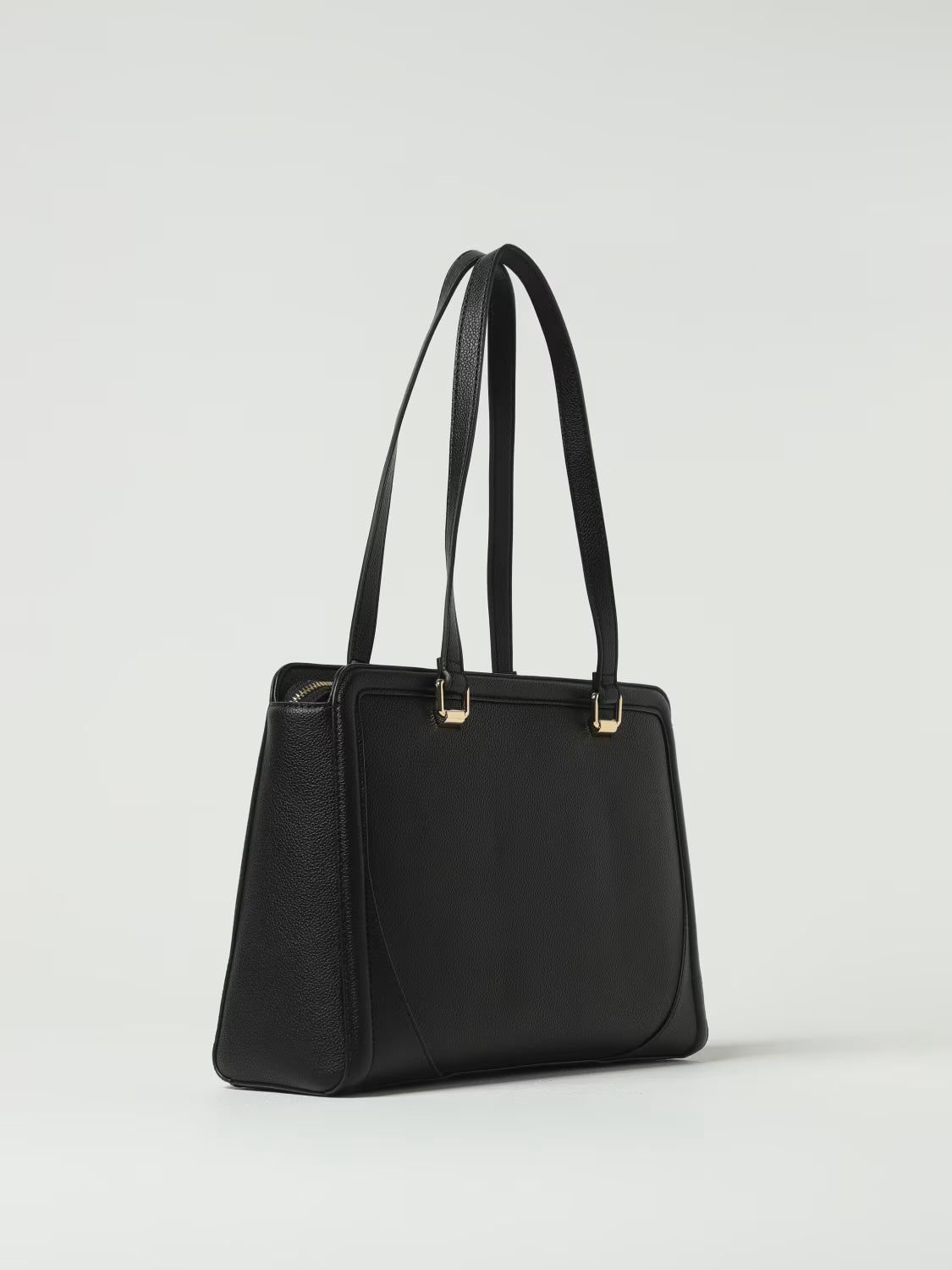 Il modello è dotato di doppi manici, che garantiscono una portabilità comoda a spalla, e di una chiusura superiore con zip, studiata per custodire in sicurezza ogni oggetto personale. Gli interni, realizzati in tessuto logato, offrono lo spazio necessario per contenere portafoglio, smartphone e accessori indispensabili, mantenendo ordine e praticità. La cura dei dettagli e l’estetica sobria ma sofisticata fanno di questa borsa un alleato perfetto per accompagnare ogni occasione, dal lavoro al tempo libero.