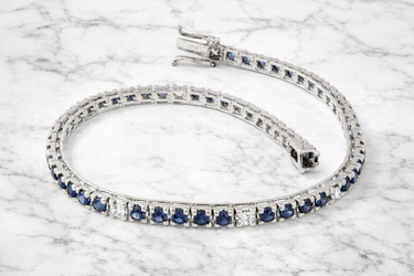 Il bracciale è arricchito da zaffiri naturali per un totale di 3,05 carati, pietre dal colore profondo e affascinante che creano un contrasto elegante con la brillantezza dei diamanti. Un abbinamento classico e senza tempo, simbolo di prestigio e raffinatezza.