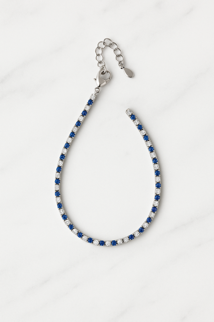 💎 Bracciale Tennis in Argento 925 con Zirconi Bianchi e Blu Alternati