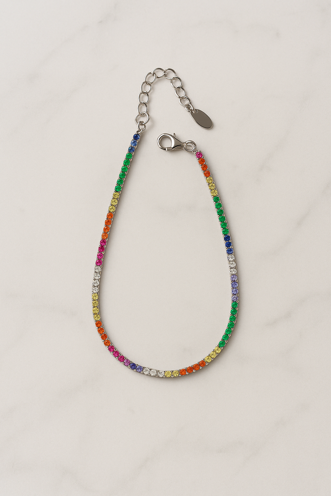 🌈 Bracciale Tennis Rainbow in Argento 925 con Zirconi Multicolor