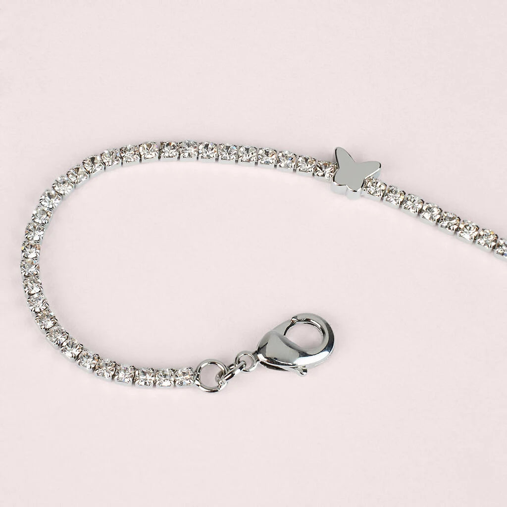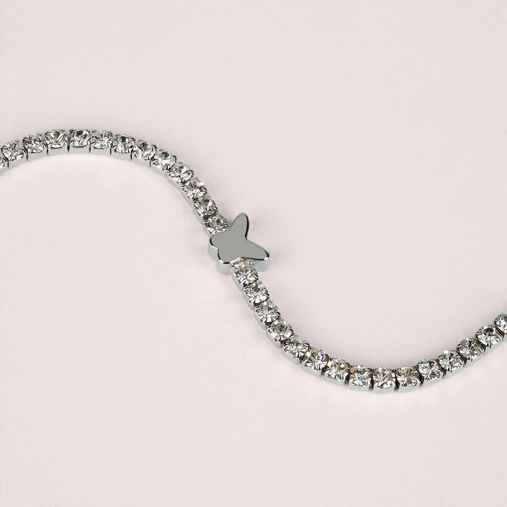Il Bracciale Tennis Farfalla Romantic Shine è l’accessorio perfetto per chi ama la delicatezza e la luminosità. Realizzato in metallo bianco e decorato con cristalli bianchi dal taglio brillante tondo, questo gioiello si distingue per la sua eleganza essenziale e per il dettaglio simbolico: una piccola farfalla, emblema di libertà, trasformazione e rinascita. Il design tennis classico viene reinterpretato in chiave moderna, rendendolo perfetto sia come idea regalo significativa, sia come accessorio fashion da indossare ogni giorno.