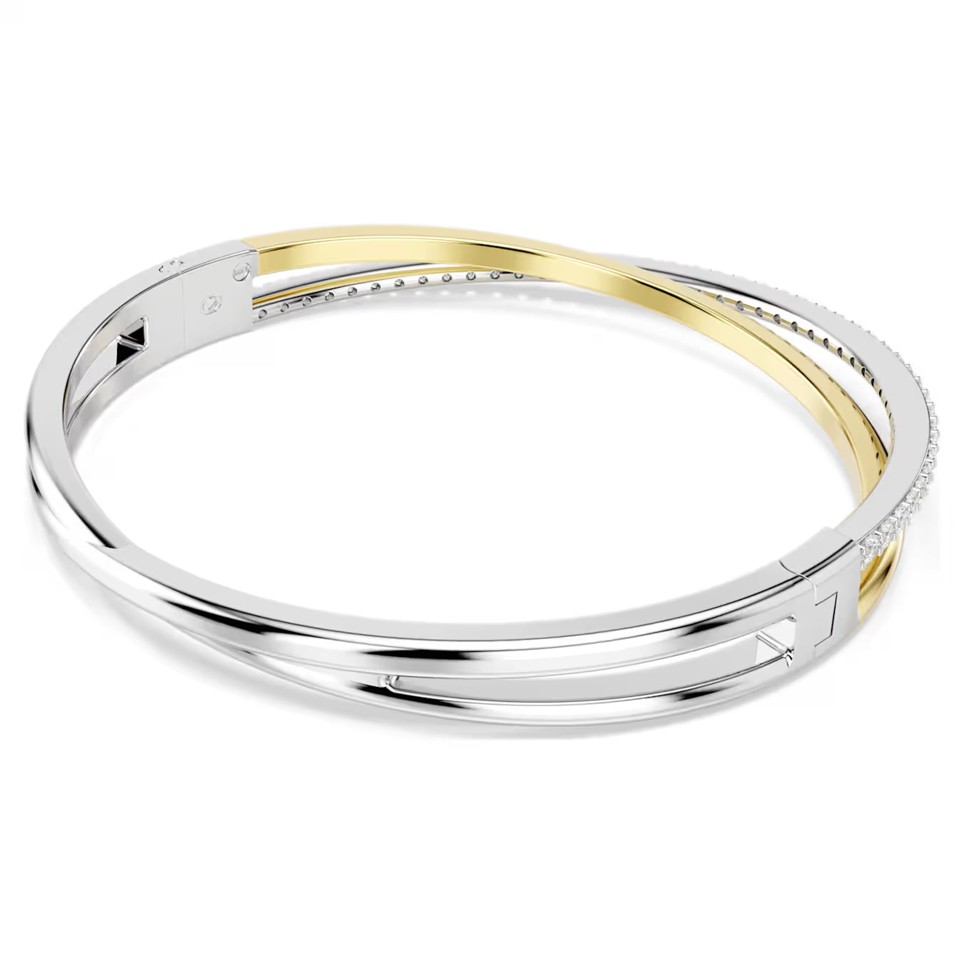 Questo bangle Hyperbola attorcigliato è realizzato con l’inconfondibile savoir-faire Swarovski. Le due fasce sovrapposte si presentano con un mix di placcature in tonalità oro e rodio, e Swarovski Zirconia rotonde in una montatura a griffe. Un modo elegante per infondere di un tocco intrigante ogni outfit.