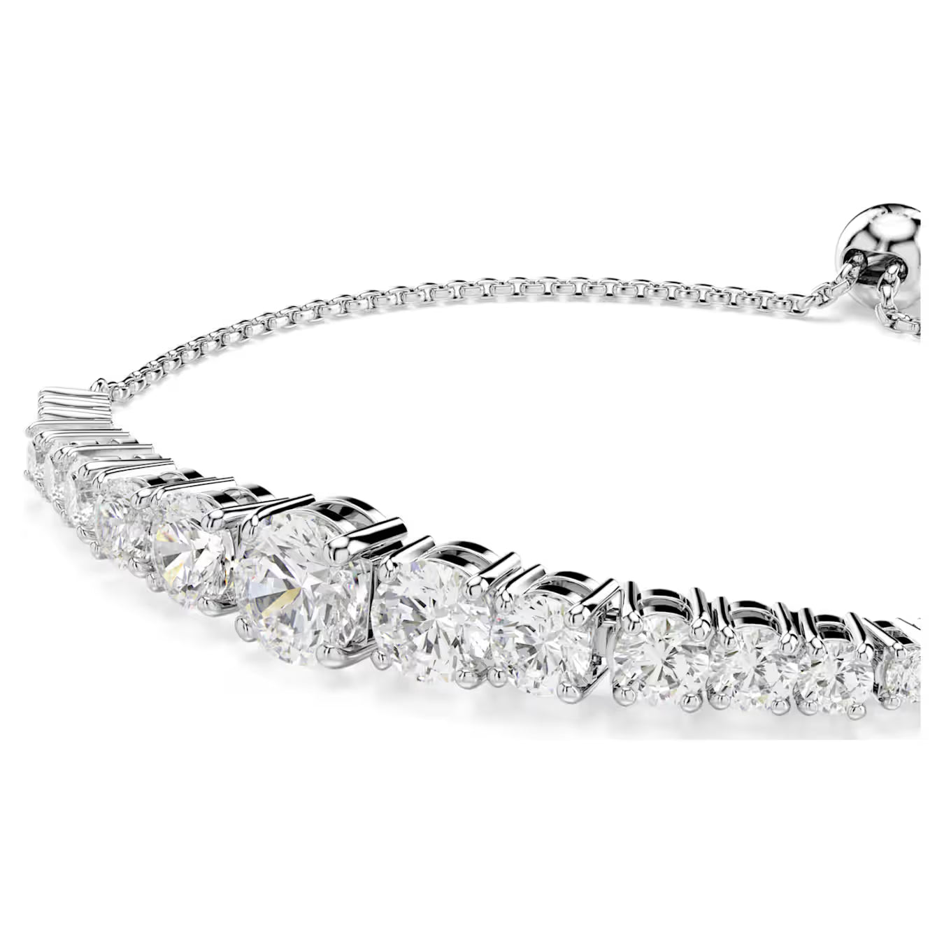 Questo radioso bracciale Matrix Tennis è il modo perfetto per far risplendere il tuo stile personale. Indossato su una delicata catena con una chiusura a sfera scorrevole, il design placcato rodio è impreziosito da una gradazione di Swarovski Zirconia taglio Round, ognuna sfaccettata per riflettere la luce in modo meraviglioso. Esalta il look lussuoso abbinando il gioiello a un set di orecchini o a una collana coordinati.