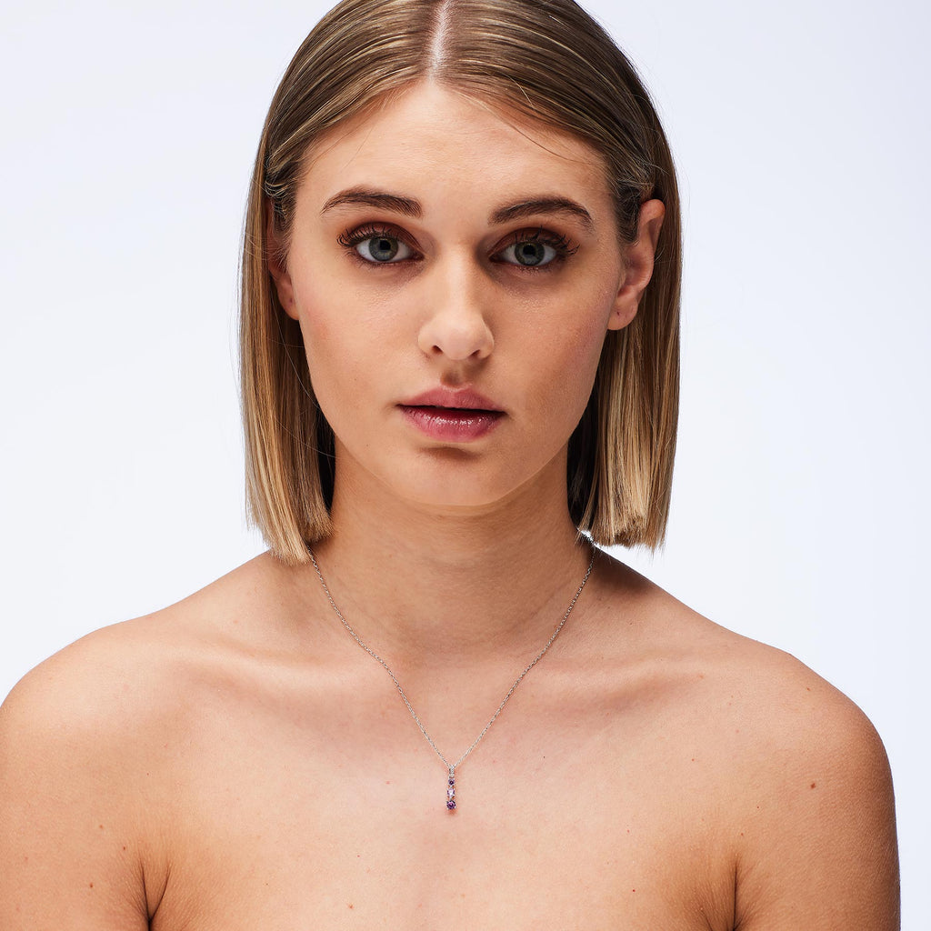 La cubic zirconia, incastonata con precisione, offre una lucentezza simile a quella dei diamanti, ma con tutta la libertà creativa che solo il colore può dare. Il rosa intenso del cristallo light ruby rende questo pendente un simbolo di affetto, energia e femminilità. Perfetto per chi ama costruire il proprio stile con piccoli dettagli luminosi.