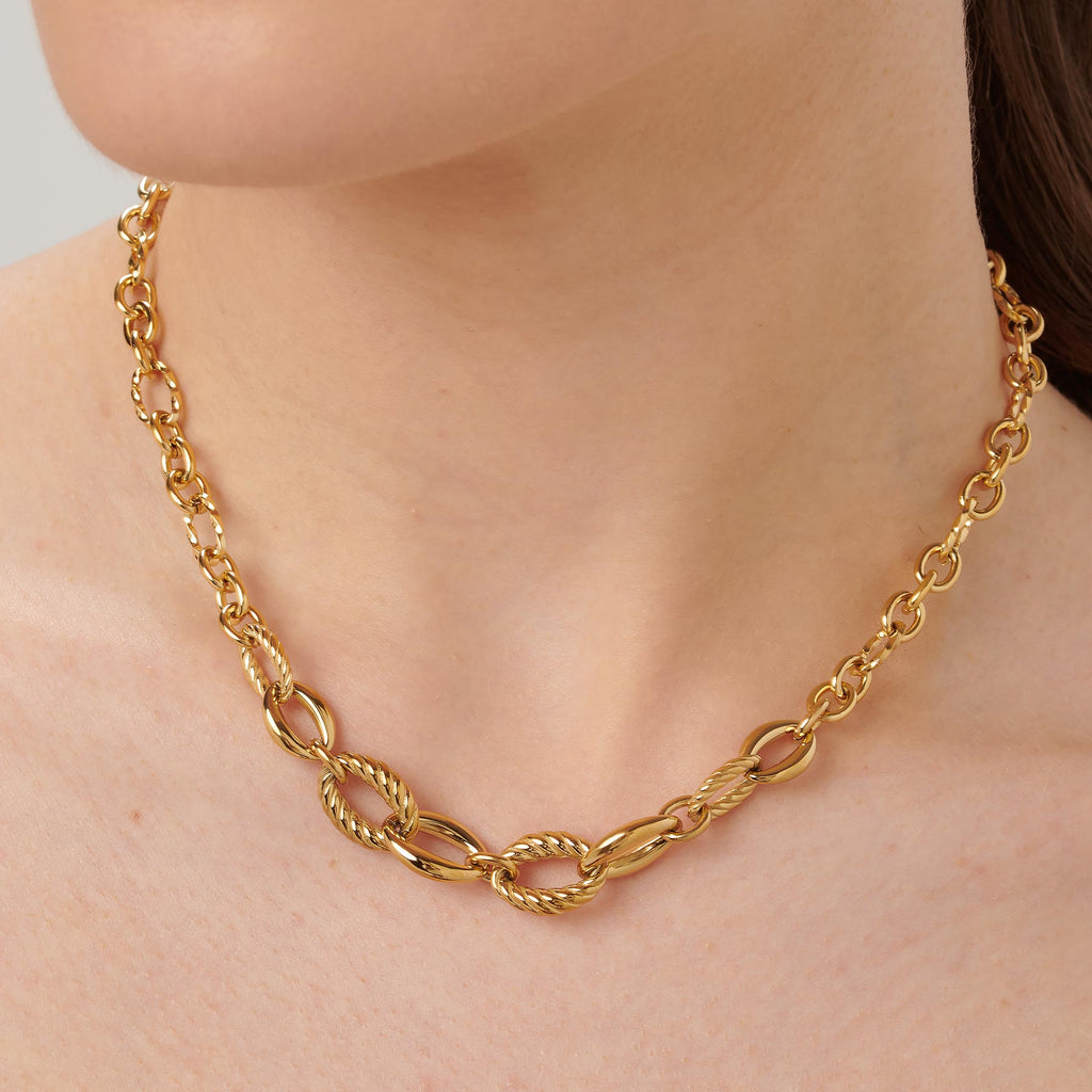 Collana catena girocollo in acciaio 316L e finitura pvd oro 14K.