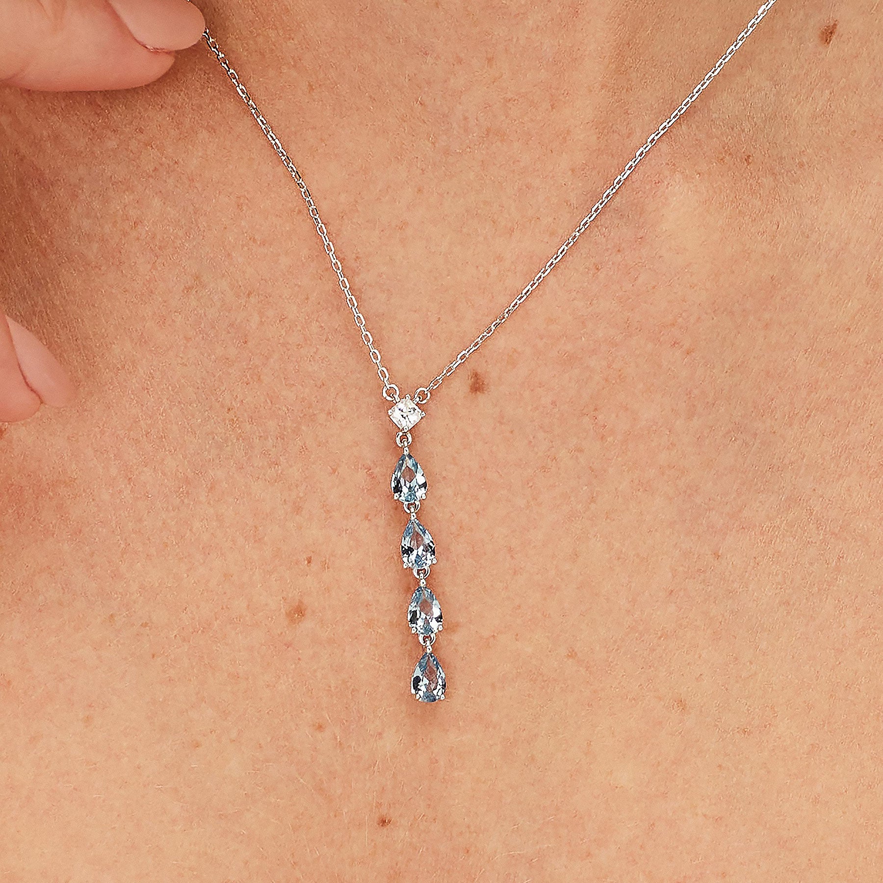Collana girocollo in argento rodiato 925‰ e pendente con square cubic zirconia e pear cubic zirconia colore light sapphire.
