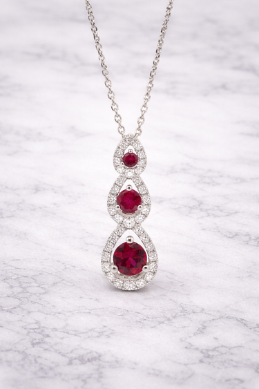 Un gioiello raffinato che unisce la luminosità dell’oro bianco 18kt alla passione intensa dei rubini naturali ❤️ e alla brillantezza dei diamanti F/G VS 💎.