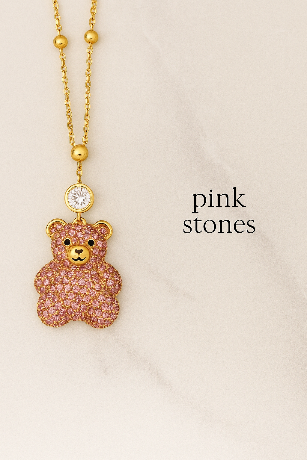 🌸 Mini Teddy in Acciaio Inox con Pink Stones – Un Gioiello Dolce, Luminoso e Femminile