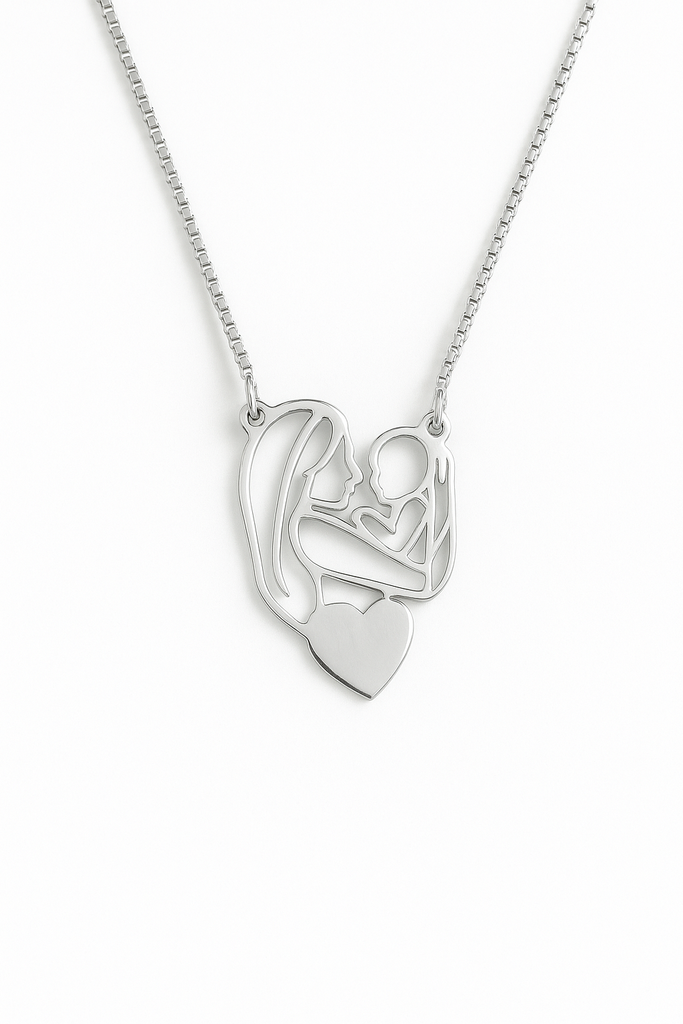 Realizzata in argento 925 di alta qualità, si distingue per il suo design delicato e armonioso, che richiama la dolcezza del legame tra mamma e bambino. Un pendente elegante, dalle linee morbide, che diventa un simbolo prezioso da portare sempre con sé.