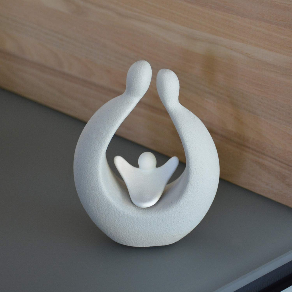 Il gesto del bambino, con le braccia aperte, simboleggia la gioia di essere venuto al mondo, accolto dall’abbraccio dei genitori. Non è solo una scena sacra, ma un messaggio universale di affetto, valido in ogni tempo e in ogni casa. Un presepe contemporaneo che unisce spiritualità e design, perfetto per chi ama l’essenzialità e la raffinatezza delle forme.