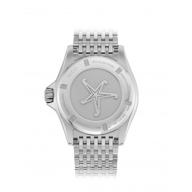 Il cuore dell’Ocean Star Tribute è il movimento automatico svizzero Mido Calibro 80, che assicura una straordinaria riserva di carica fino a 80 ore. La corona a vite e la struttura robusta rendono questo modello impermeabile fino a 20 bar (200 metri), ideale per le attività acquatiche e per chi cerca un orologio impermeabile 200 metri senza rinunciare all’eleganza. Il vetro zaffiro protegge il quadrante da urti e graffi, mentre la chiusura deployante con estensione per sub garantisce comfort e sicurezza anche sopra la muta.