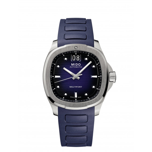 L’Orologio Mido uomo Multifort TV Big Date è la sintesi perfetta tra tradizione orologiera e modernità stilistica. La sua cassa rettangolare in acciaio inossidabile, ispirata alle forme vintage degli anni ’70, viene reinterpretata con un twist contemporaneo: linee tese, angoli decisi e un carattere visivo che cattura immediatamente lo sguardo. Il quadrante blu sfumato, impreziosito dall’indicazione Big D