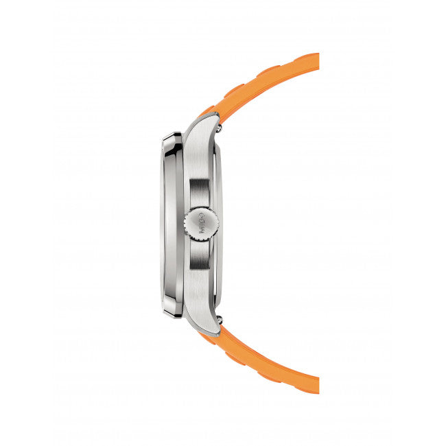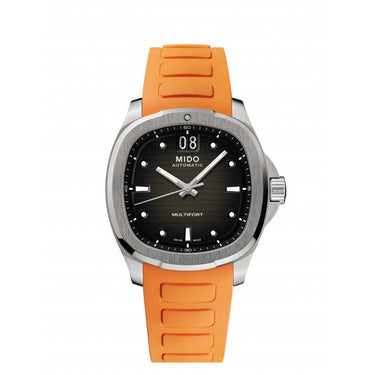 L’Orologio Mido uomo Multifort TV Big Date unisce alla perfezione design audace e tecnologia svizzera di ultima generazione. La sua inconfondibile cassa rettangolare in acciaio inossidabile richiama l’iconica forma “TV” degli anni ‘70, reinterpretata in chiave moderna per un’estetica senza tempo. Il quadrante grigio con lavorazione sfumata regala profondità visiva e un carattere deciso, mentre l’ampia finestrella BIG DATE a ore 12 è il segno distintivo di questo modello unico. Il cinturino in gomma arancione aggiunge un tocco di energia sportiva, perfetto per chi cerca un orologio con cinturino arancione dallo stile originale.