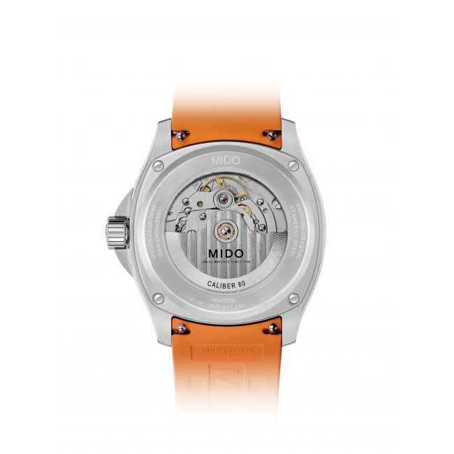 Al cuore del Multifort TV Big Date batte un potente movimento MIDO automatico ETA, noto come Calibro 80, con riserva di carica di 80 ore. Questa tecnologia garantisce non solo affidabilità e precisione, ma anche una straordinaria resistenza agli urti e ai campi magnetici grazie alla spirale in Nivachron™. Il vetro zaffiro con trattamento antiriflesso su entrambi i lati assicura massima visibilità in ogni condizione, mentre la corona a vite e il fondello trasparente offrono solidità strutturale e un affascinante sguardo sul movimento interno. Con un peso contenuto di 100g, questo orologio automatico svizzero è comodo da indossare ogni giorno.