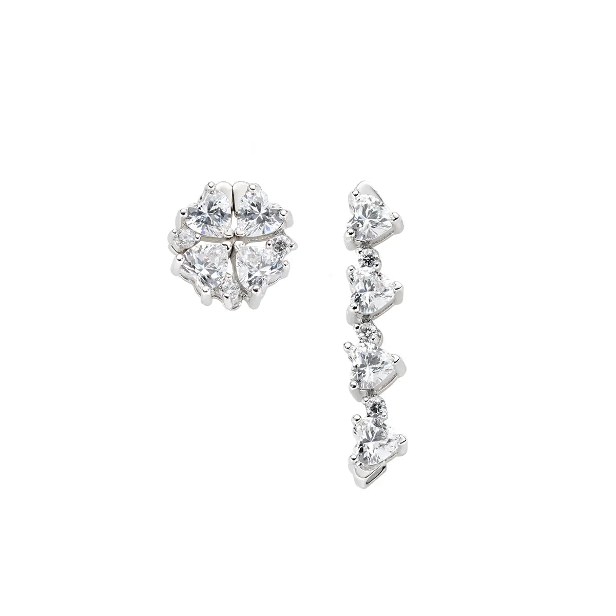 Orecchini Quadricuore magnetico in argento 925 rodiato con zirconi bianchi taglio cuore. Grazie alla calamita è possibile portare gli orecchini in due modi: chiusi in un Quadricuore di 8 mm, oppure come pendenti di 2 cm di lunghezza. Chiusura con farfallina. Tac, si chiudono! Stac, si aprono! Con la tenacia che contraddistingue l'Amore e la Speranza, delle piccole calamite trasformano i quattro cuori degli Orecchini Quadricuore Magnetico Bianchi in orecchini a lobo o pendenti. Scegli come indossarli, mixati o in un'unica versione.
