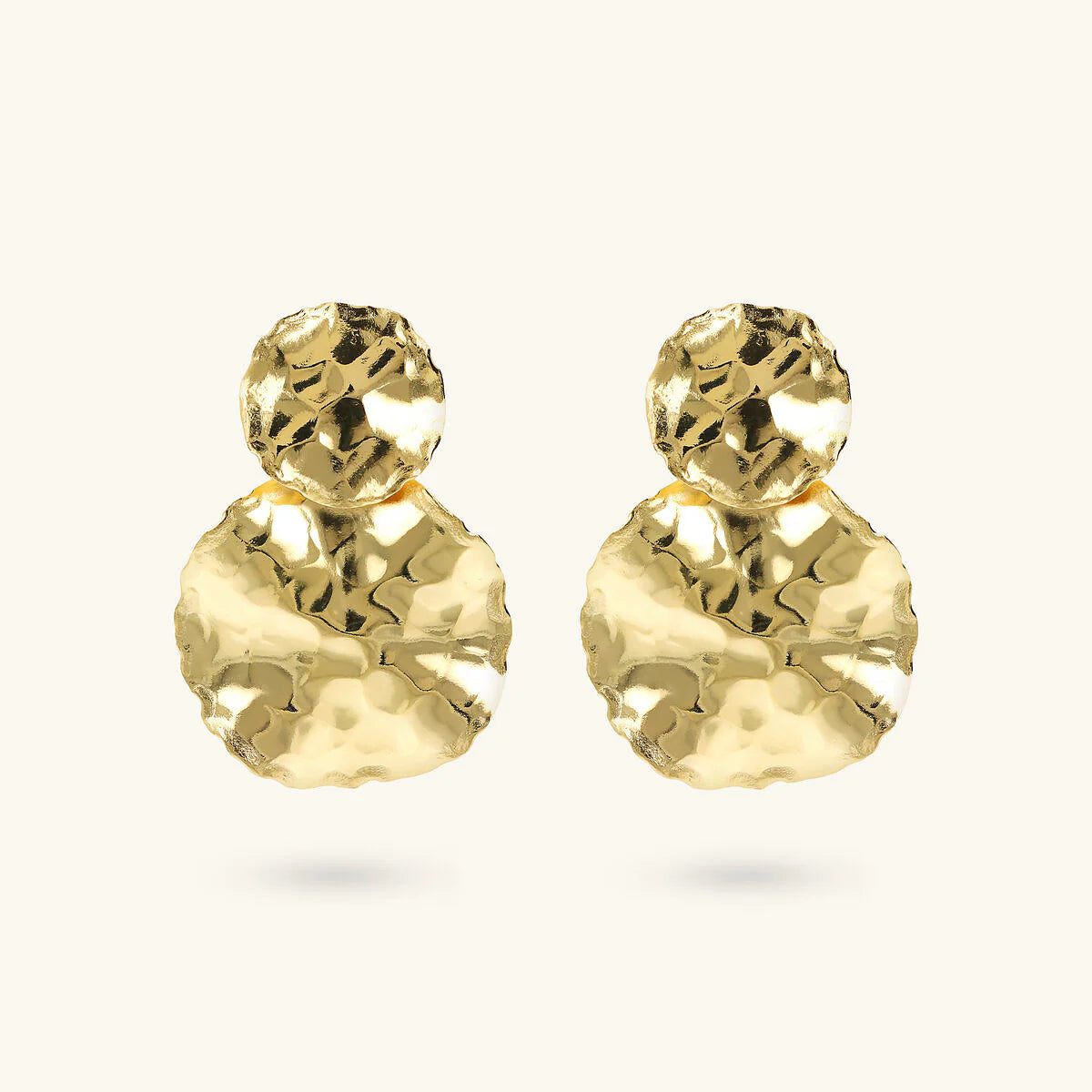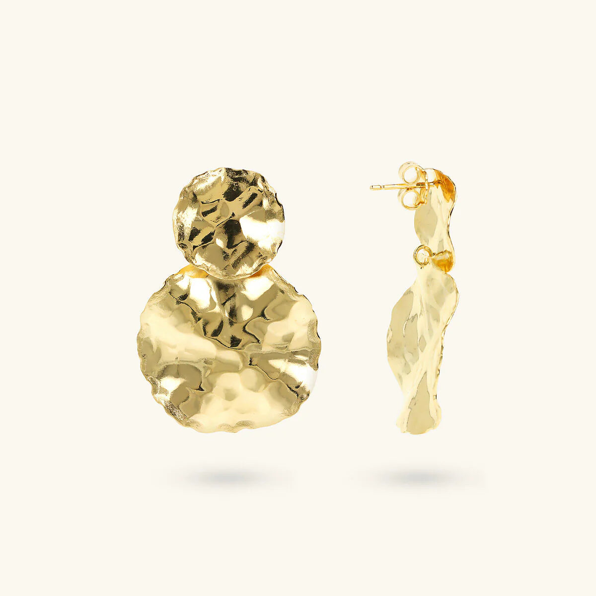 Gli Orecchini Pendenti Martellati a Doppio Disco Graduato sono l'accessorio perfetto per chi cerca eleganza, comfort e un design luminoso. Aggiungi un tocco di classe al tuo look con questi orecchini sofisticati.