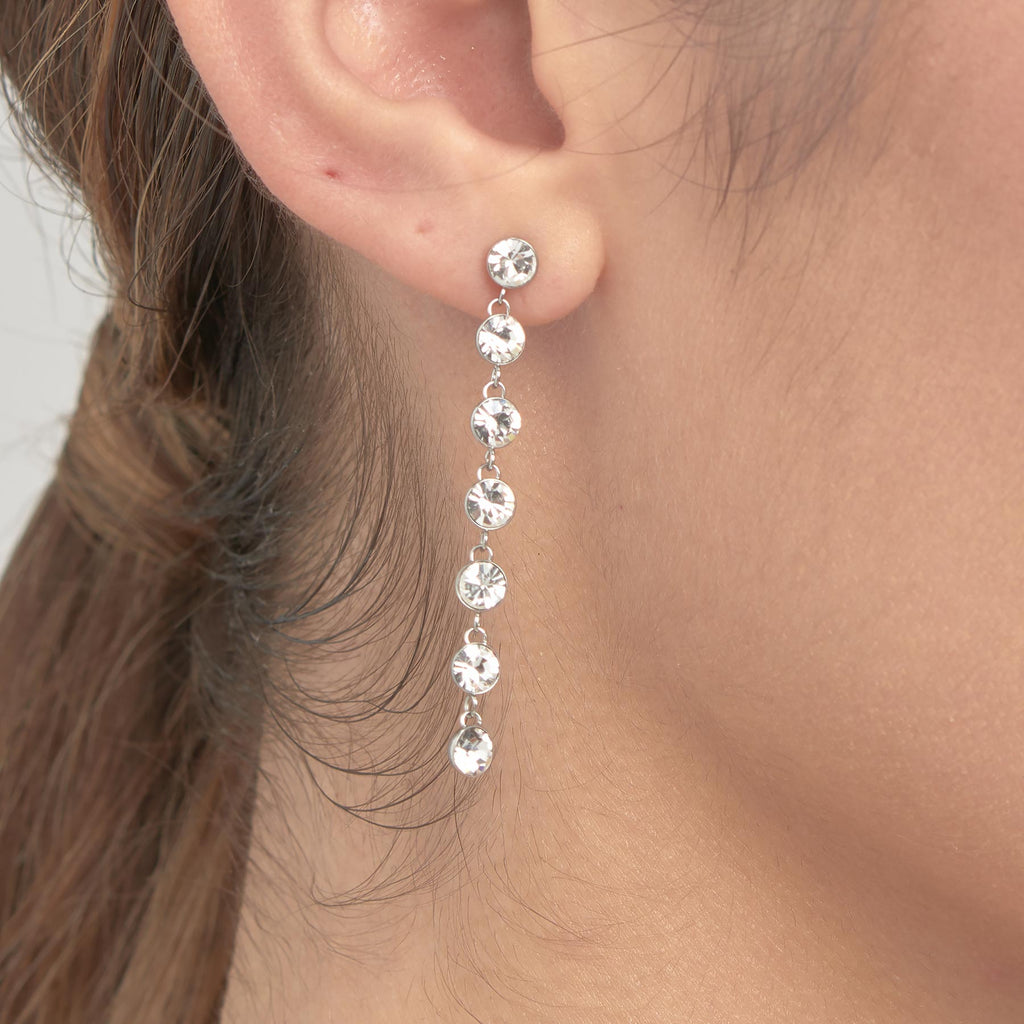 Orecchini da donna di Brosway della collezione di Symphonia. Gioiello realizzato in acciaio 316L con cristalli crystal. Lunghezza: 45 mm. La referenza è BYM145