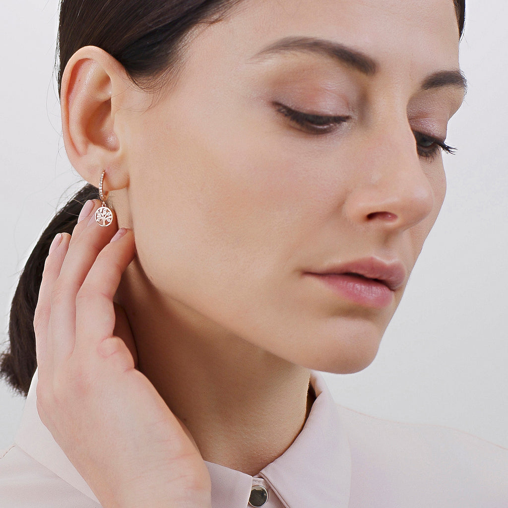 Mono Orecchino Da Donna Di Brosway Della Collezione Chakra. Gioiello Realizzato In Acciaio 316L Con Finitura In Pvd Oro E Con Albero Della Vita Con Cristalli. Lunghezza: 25 Mm. La Referenza È Bhke005