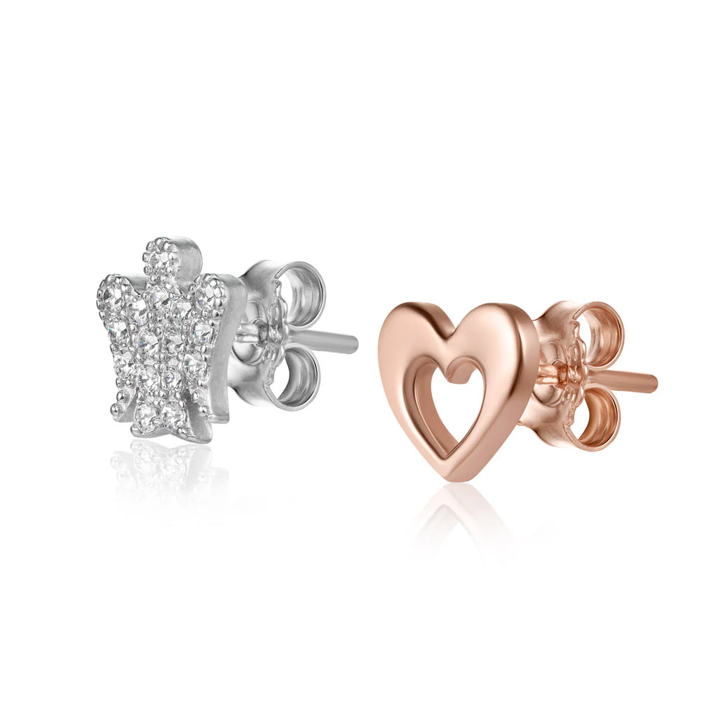Gli Orecchini Con Angelo Pavé e Cuore In Argento Rosato sono più di un accessorio: sono un’emozione da portare ogni giorno. Raffinati, luminosi, e pieni di significato.