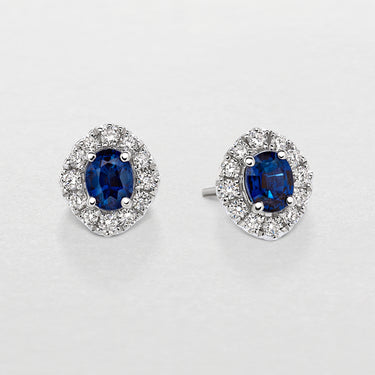 Al centro della composizione spiccano due zaffiri naturali ovali da 0.79 ct totali, scelti per la loro intensità cromatica e la purezza del taglio. La tonalità blu intensa delle pietre evoca mistero, saggezza e nobiltà. Intorno, un contorno di diamanti taglio brillante, per un totale di 0.27 ct, incornicia ogni pietra con una luce viva e preziosa. I diamanti, selezionati per colore G e purezza VS, creano un contrasto raffinato che mette in risalto lo zaffiro senza sovrastarlo.