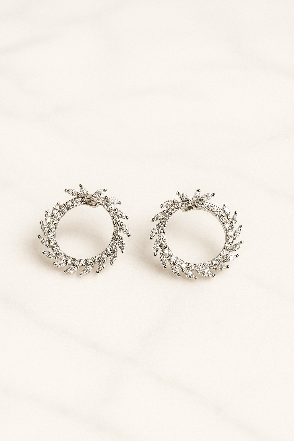 Gli orecchini Aurelia sono una vera celebrazione della luce. Realizzati in argento 925, disponibili nelle versioni dorata e silver, avvolgono il viso con una luminosità sofisticata grazie alla lavorazione circolare impreziosita da una pioggia di zirconi scintillanti.