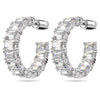 Un design a cerchio classico reinterpretato in modo brillante. Questo elegante paio presenta una serie uniforme di pietre dal taglio octagon inserite in una raffinata montatura placcata in rodio. Davvero un tocco di magia quotidiana in più a ogni look, di giorno o di sera. Parte della linea Matrix, questi orecchini sono firmati dalla Direttrice creativa Giovanna Engelbert per la Collection III.