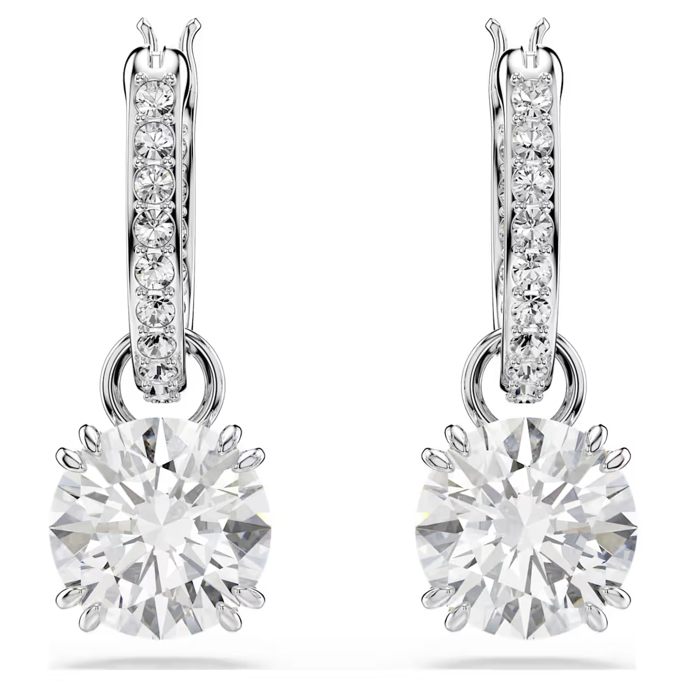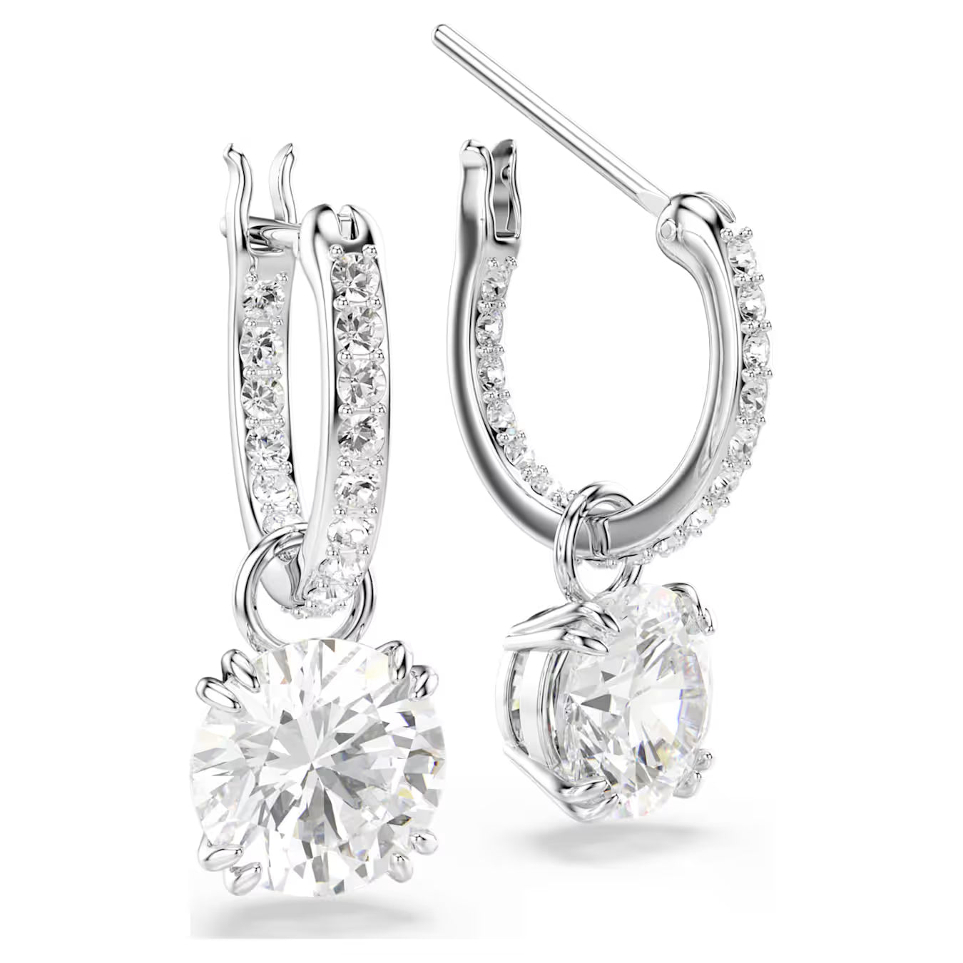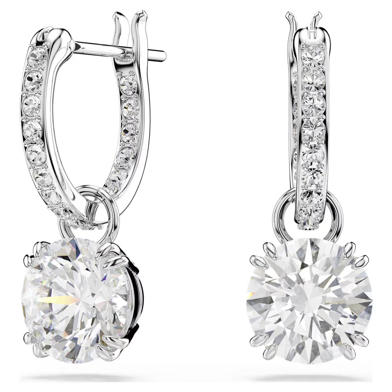 Questi orecchini pendenti della linea Stilla sono un incanto potente da indossare all’infinito. Le sfavillanti pietre centrali sono valorizzate dal pavé, sulla galleria e sui cerchi, incastonati in una placcatura rodio e centrano alla perfezione il punto di equilibrio tra spettacolarità e raffinatezza. Perché risplendano in tutto il loro fulgore, indossali con i capelli raccolti.