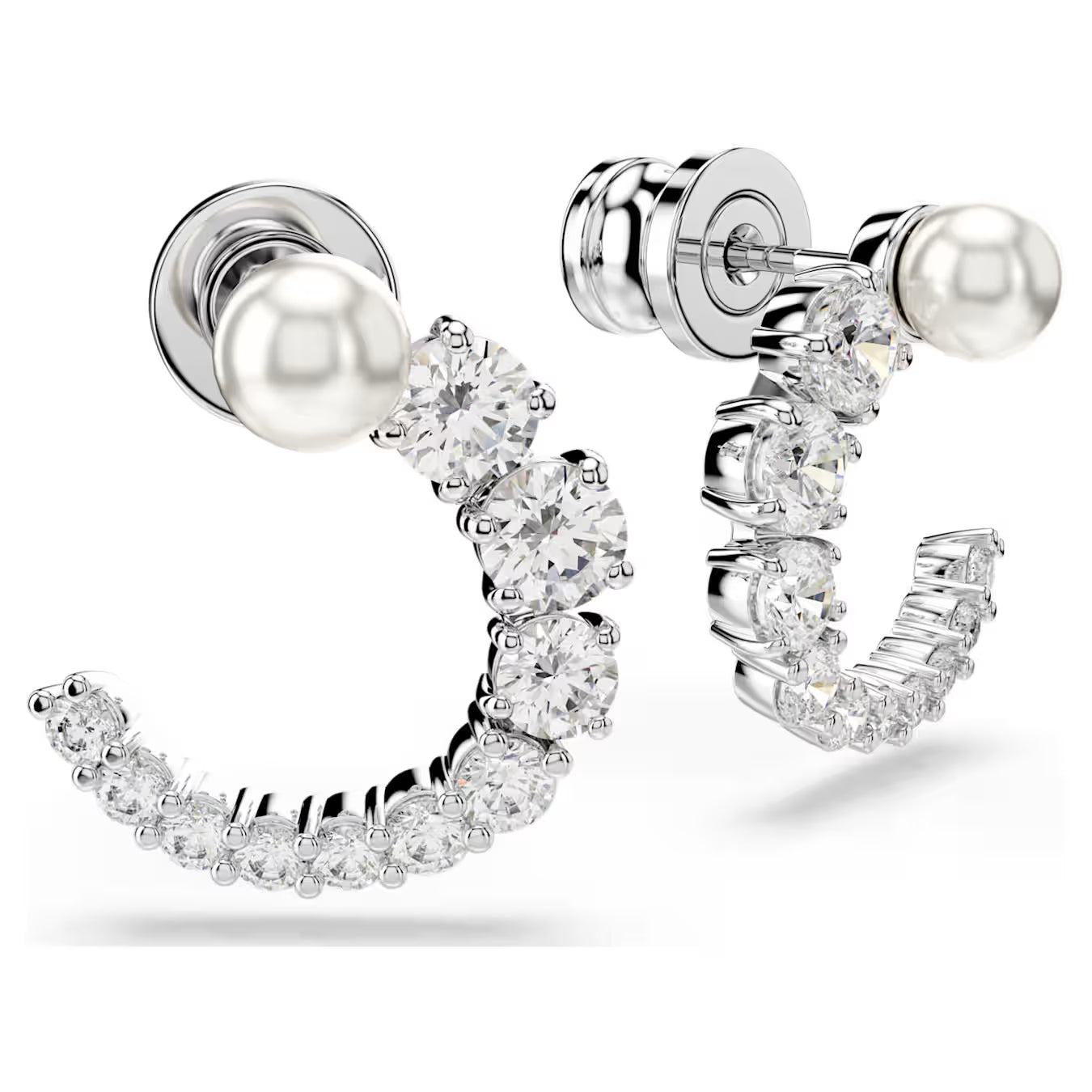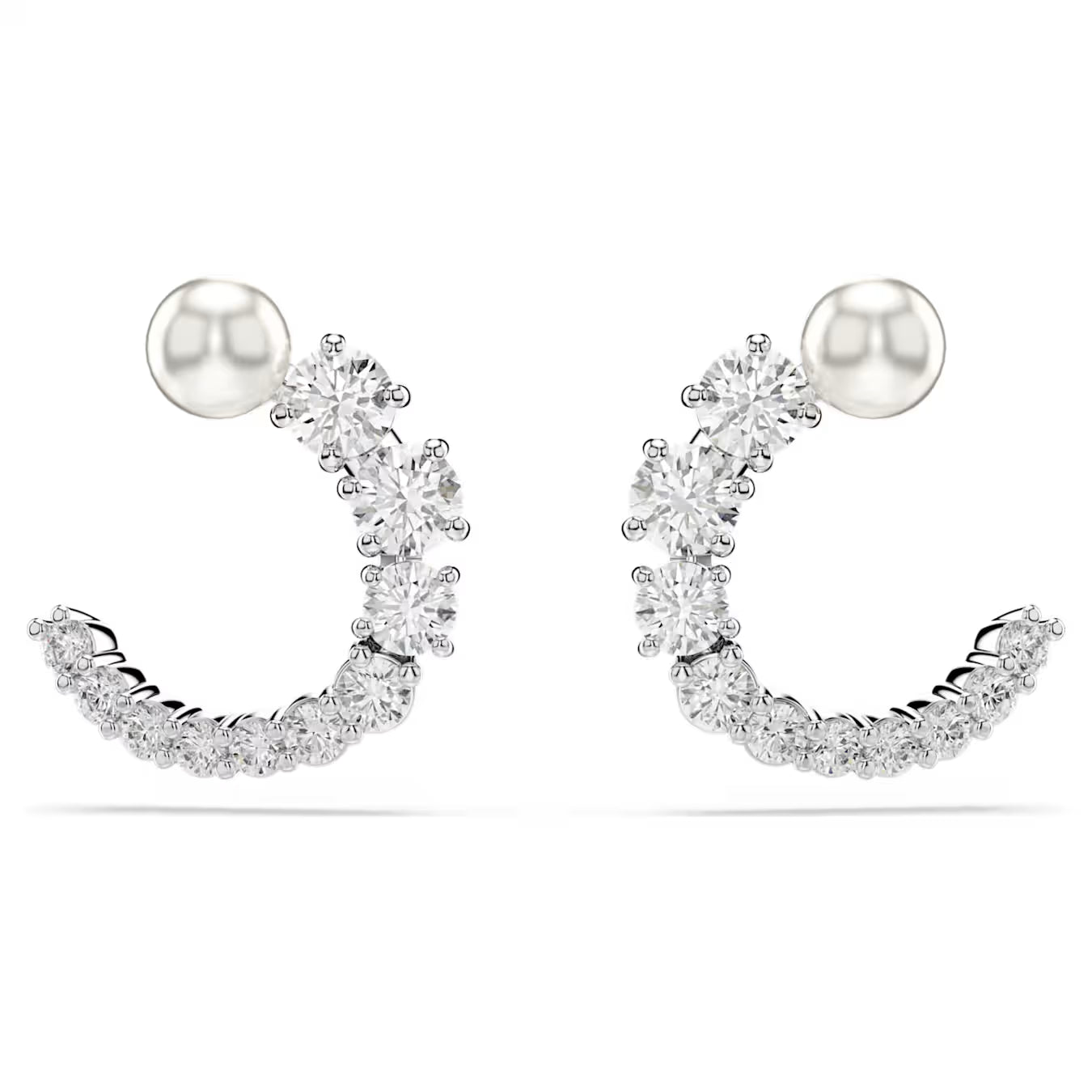Ogni dettaglio di questi orecchini a buco emana bellezza. Ciascun orecchino a buco placcato rodio presenta un anello aperto di Swarovski Zirconia trasparenti, di misure che variano da piccole a grandi, ed è terminato da una Crystal Pearl Swarovski bianca sulla sommità. Abbinali a un pendente Matrix coordinato per attirare su di te ogni sguardo.