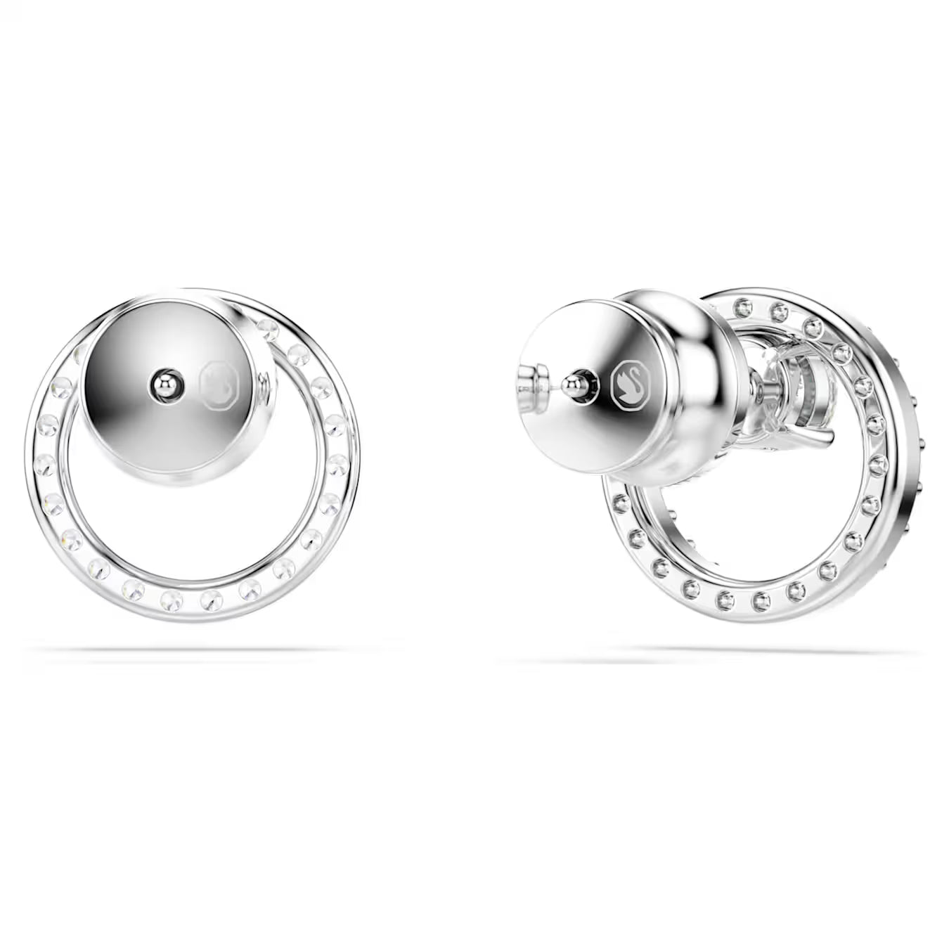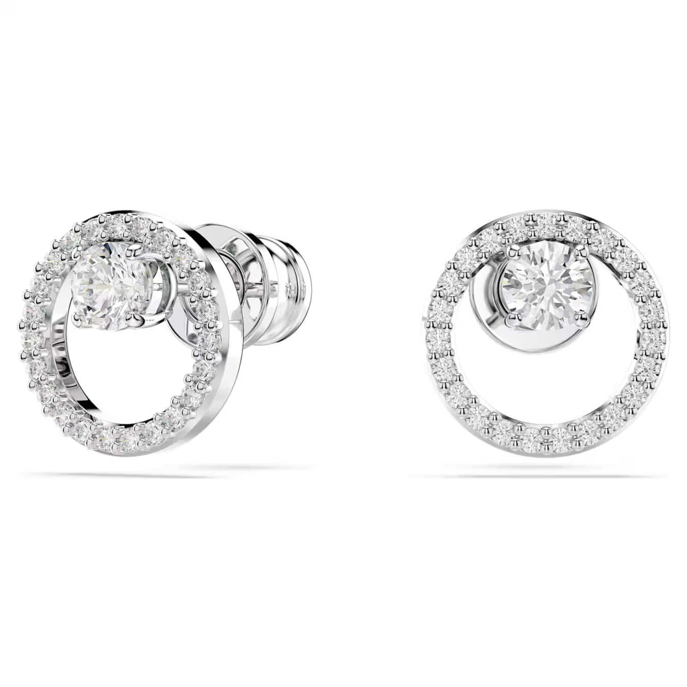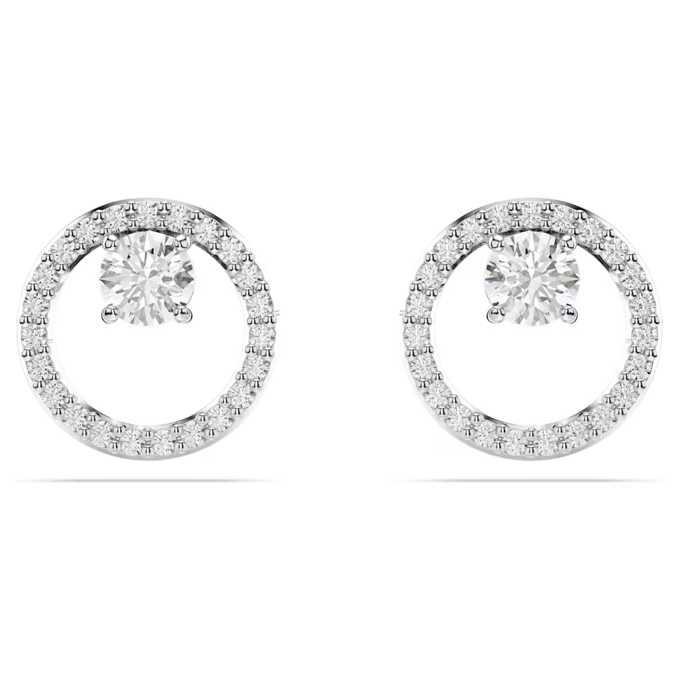 Questi raffinati orecchini a lobo circolari sprigionano un’intramontabile eleganza. Ciascun orecchino a buco è placcato rodio e presenta un anello centrale in pavé di Swarovski Zirconia trasparenti, oltre a una singola Swarovski Zirconia montata a griffe al centro. Amplifica l’intensità abbinando un pendente Constella abbinato.