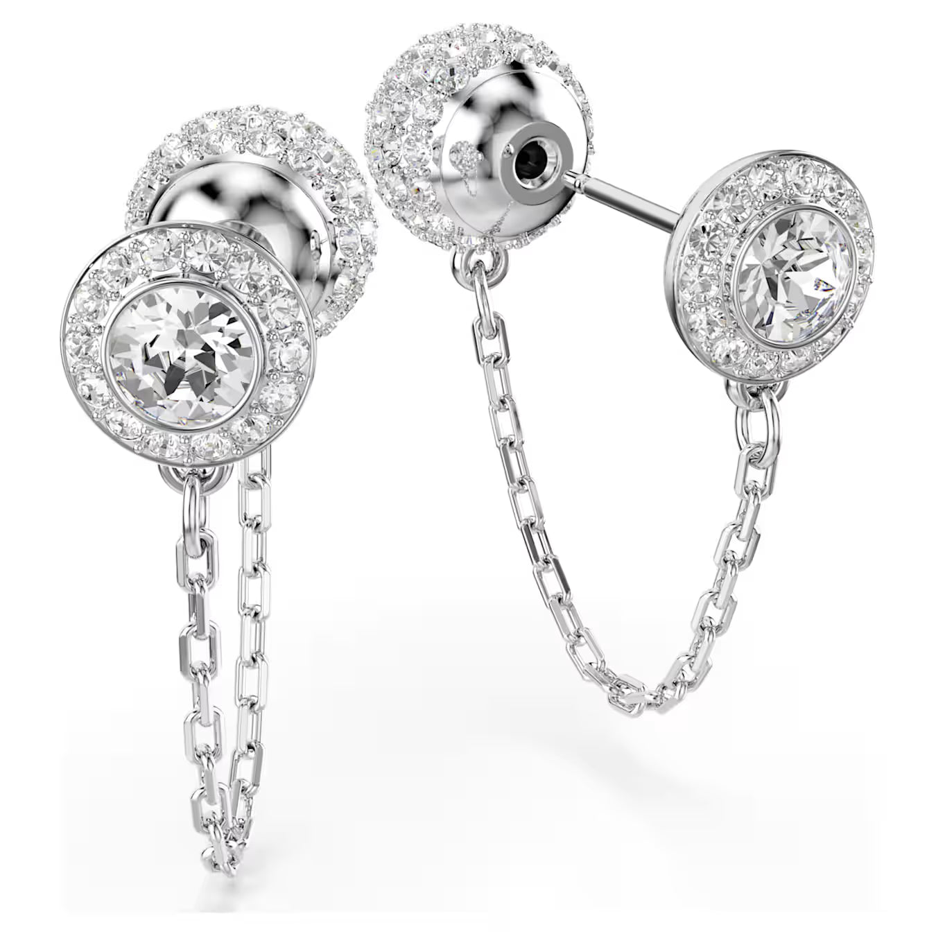 Irradia meraviglia con questi scintillanti orecchini Swarovski. Ciascun elemento placcato rodio presenta una lunga catena collegata a un motivo double face, che offre una diversa disposizione di cristalli taglio Round su ciascun lato. Il motivo pendente può anche essere collegato alla parte posteriore dell’orecchino a lobo per indossarlo con la massima versatilità. Abbinali ad altre creazioni Una Angelic per un look dalla radiosità impareggiabile.
