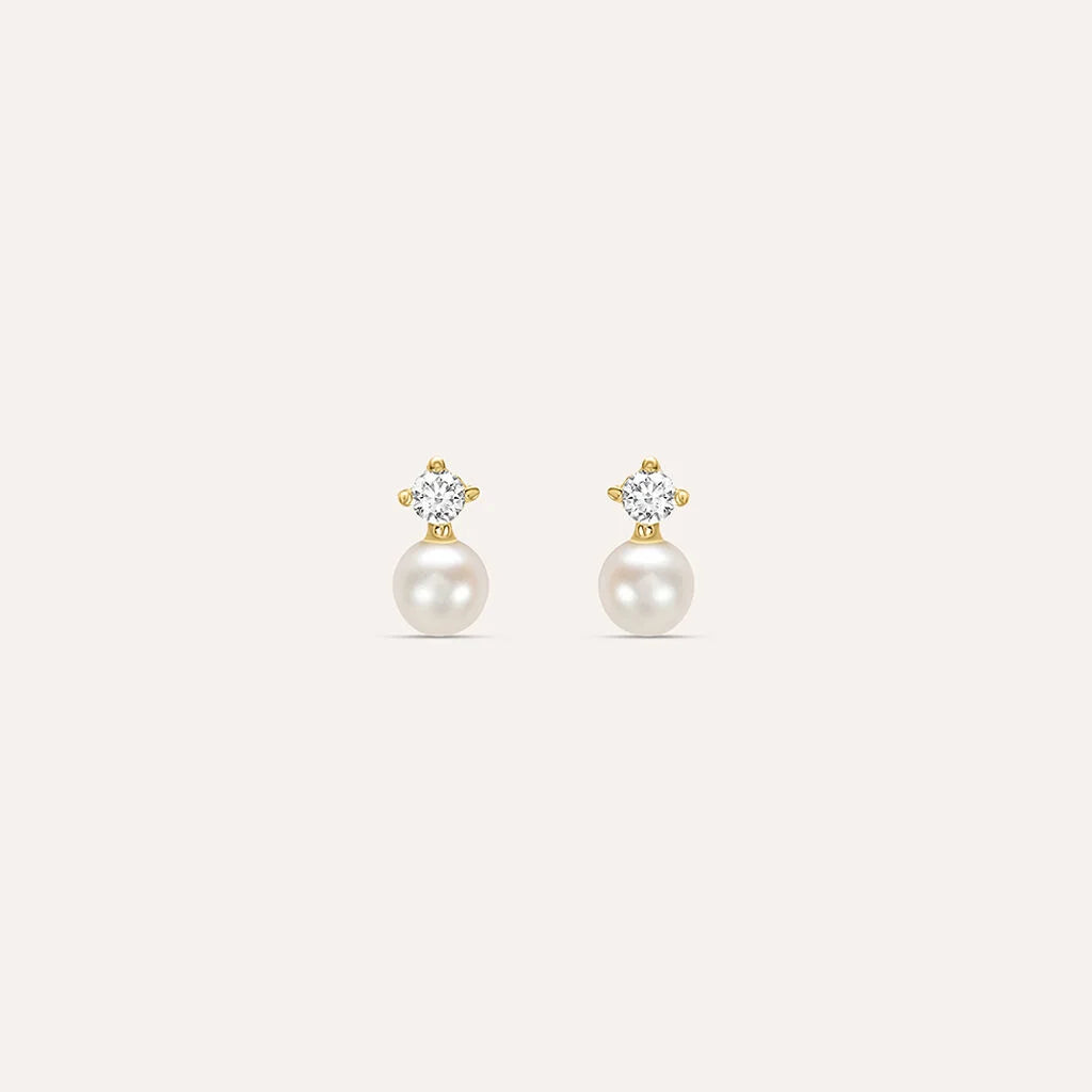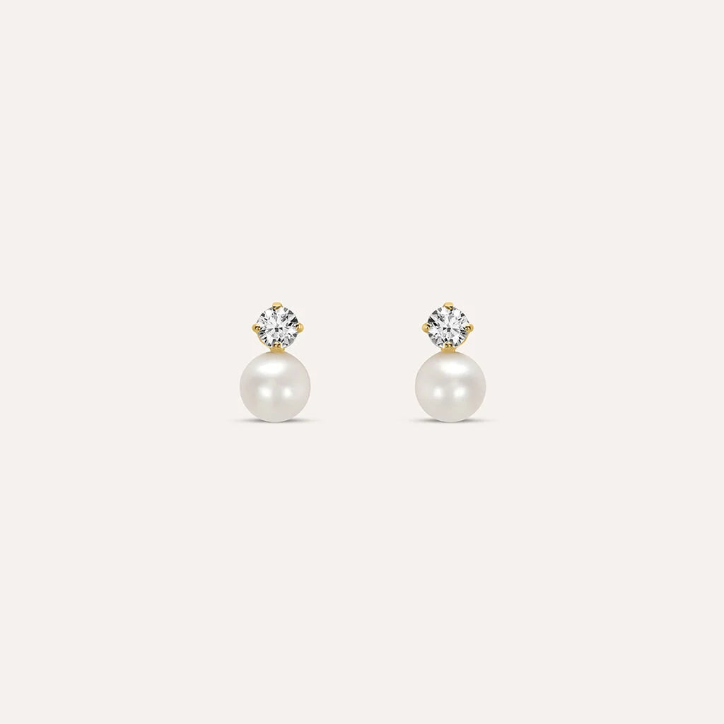 Orecchini Lobo Bon Ton Oro Giallo Perla D'Acqua Dolce Cubic Zirconia 1400978