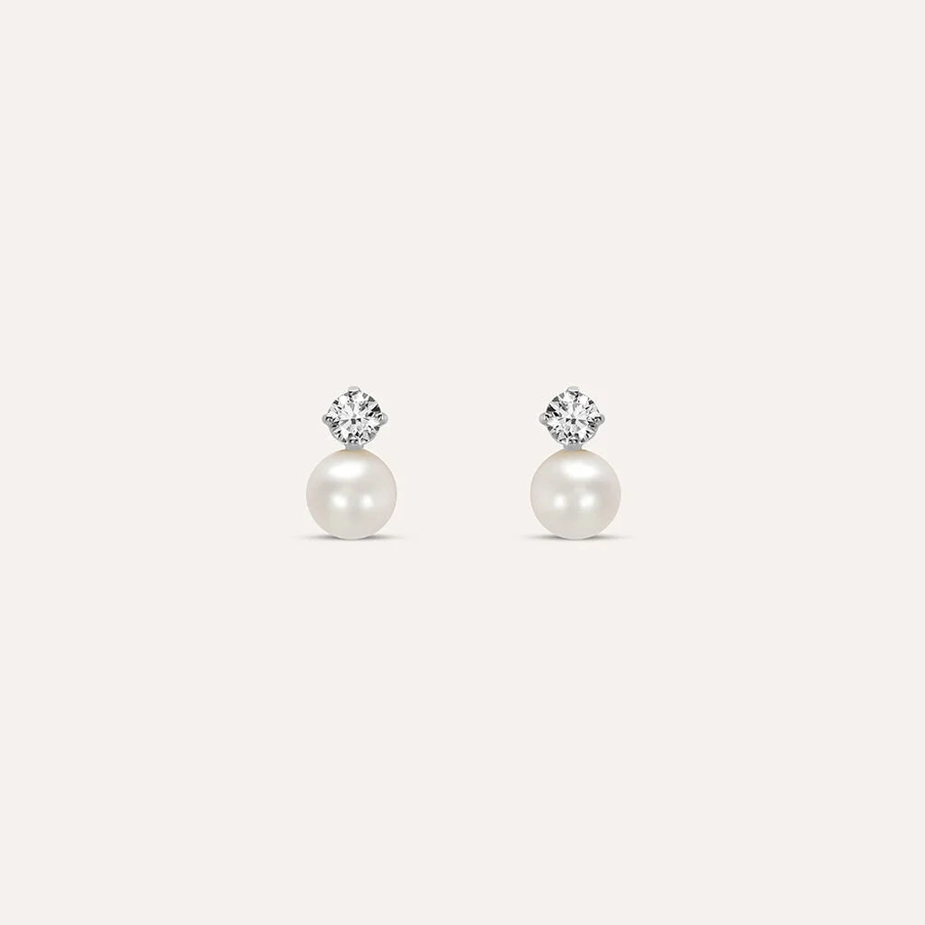 Orecchini Lobo Bon Ton Oro Bianco Perla D'Acqua Dolce Cubic Zirconia 1426717