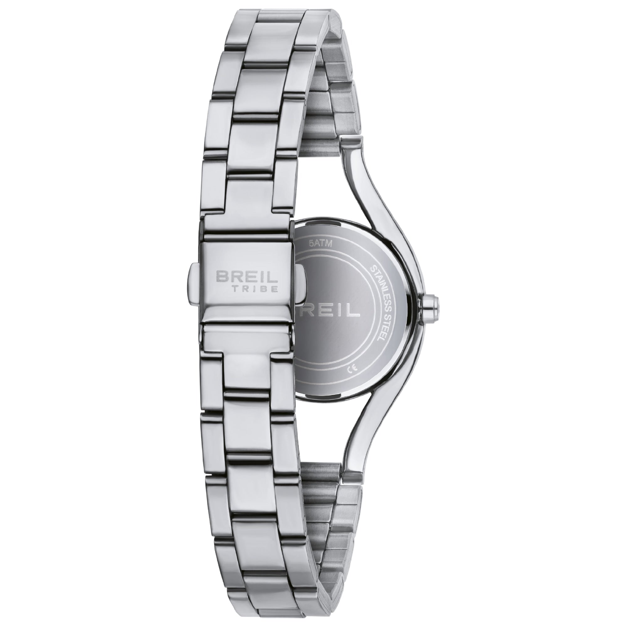 Il modello Breil Elettra è ideale per l’uso quotidiano grazie alla sua leggerezza e funzionalità. Il movimento al quarzo garantisce precisione e affidabilità, mentre il vetro minerale protegge il quadrante da urti e graffi. Il bracciale in acciaio lucido è regolabile da 13,5 a 19 cm e si chiude con una pratica deployante con pulsanti, per una vestibilità sicura e comoda.