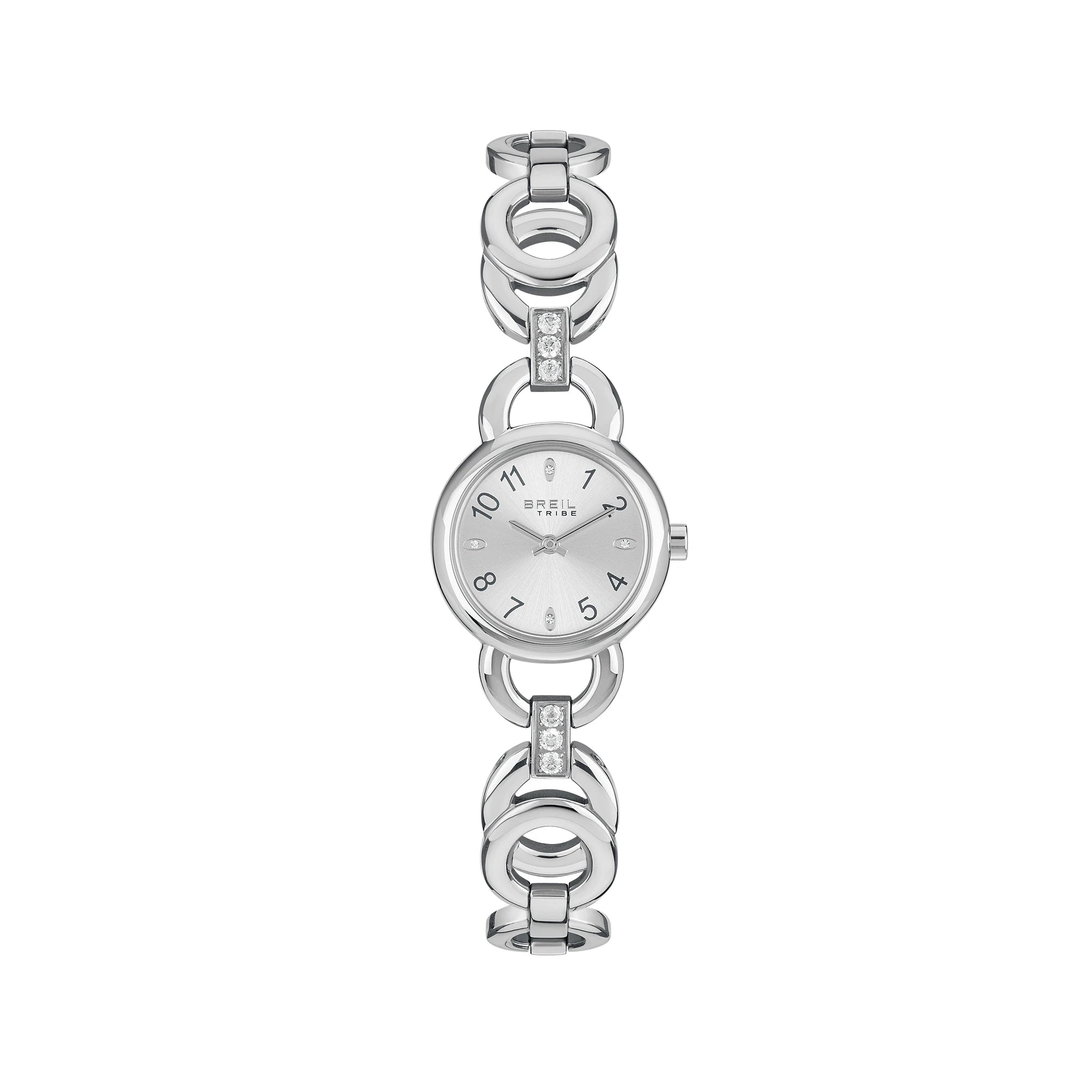 L’Orologio Alya Breil è molto più di un segnatempo: è un orologio gioiello da donna pensato per chi desidera indossare ogni giorno un tocco di raffinatezza. La cassa rotonda in acciaio lucido accoglie un quadrante silver essenziale e luminoso, impreziosito da quattro cristalli delicati posizionati sugli indici, che donano luce senza mai risultare eccessivi. Un design pulito ed equilibrato, perfetto per accompagnarti in ogni momento della giornata.