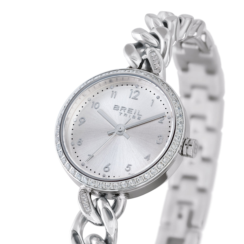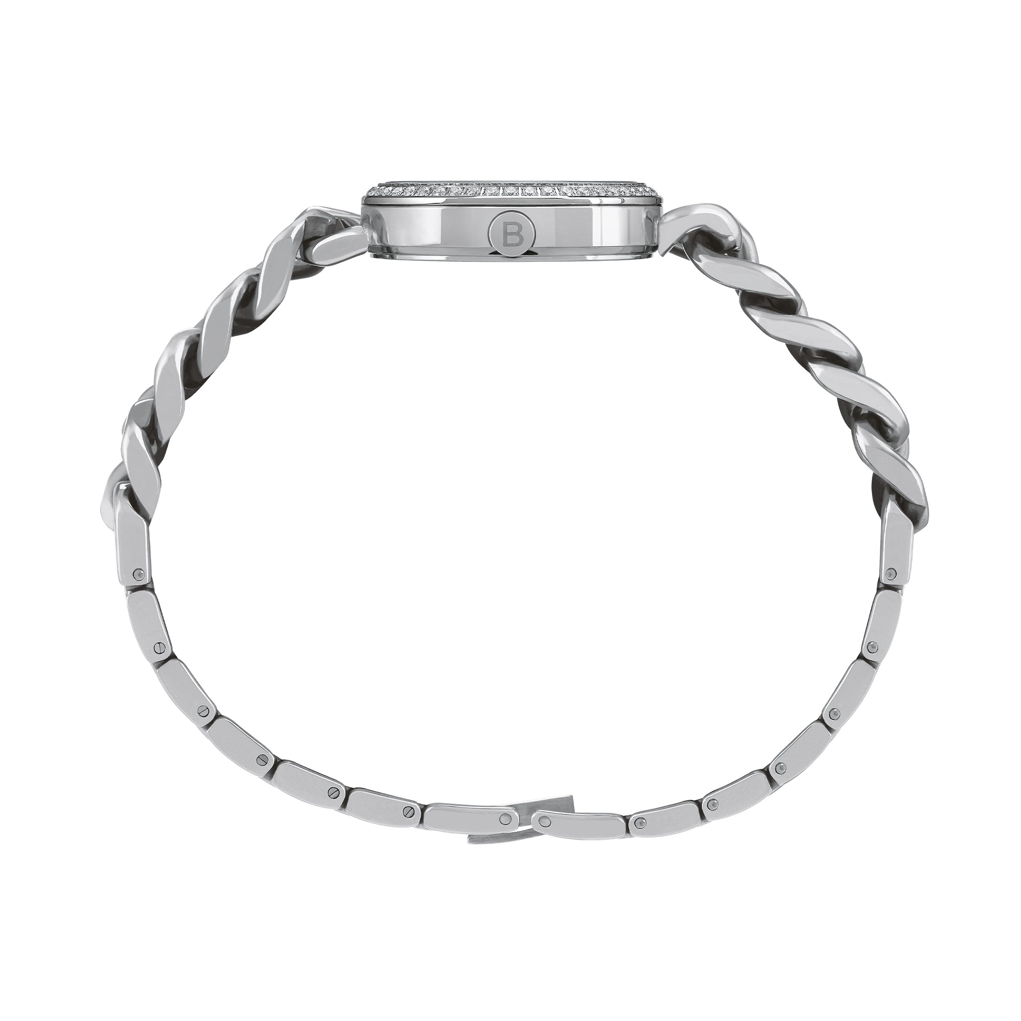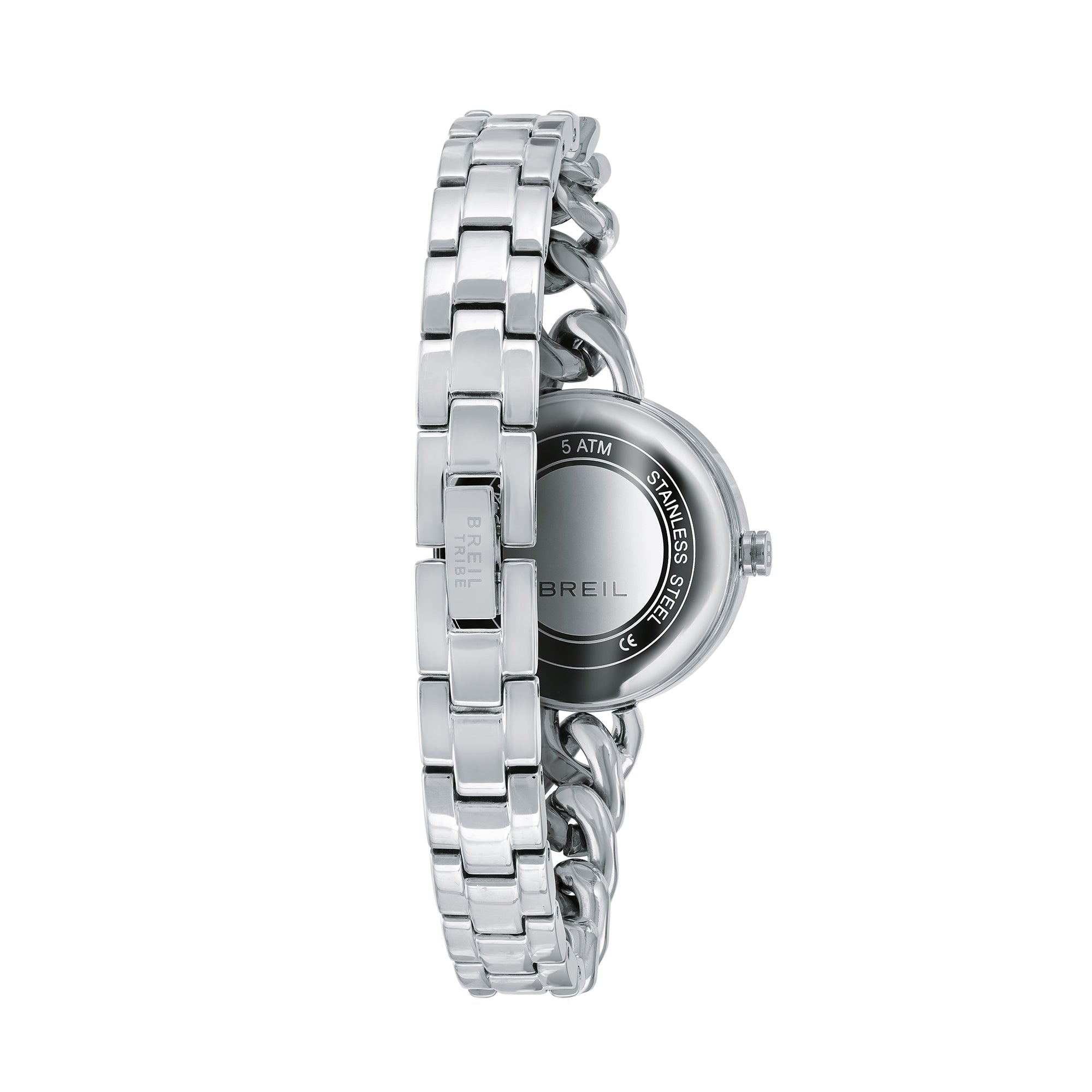 Il cuore del design del Breil Blanche è il suo bracciale groumette in acciaio, lucido e sinuoso, che trasforma l’orologio in un vero e proprio gioiello da polso. Completato da una chiusura a gioielleria regolabile, offre una vestibilità sicura e confortevole, con una lunghezza adattabile da 13,5 a 19 cm.