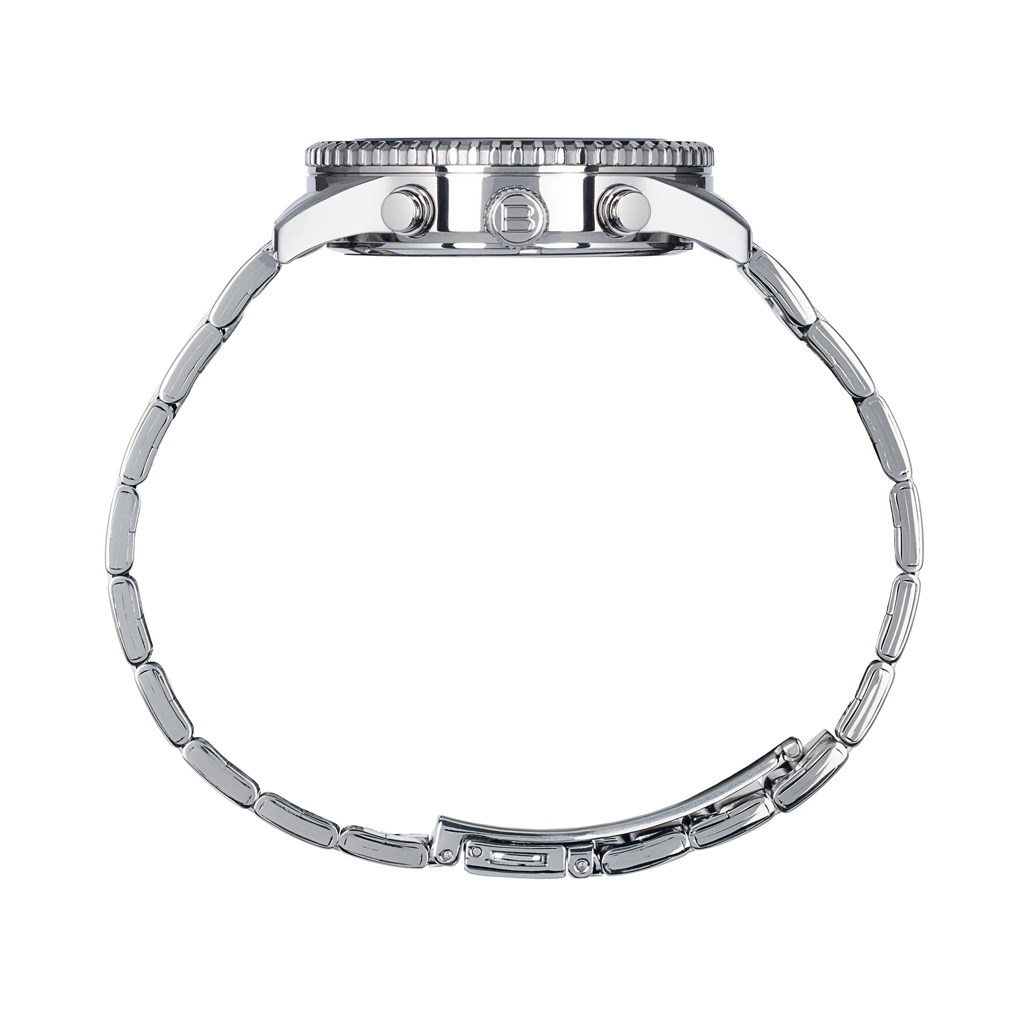 La cassa in acciaio da 41 mm, solida e compatta, ospita un quadrante nero e verde con dettagli silver e indici bianchi a contrasto per una leggibilità immediata. A sottolineare lo stile nautico e grintoso, troviamo una lunetta bicolore nero/verde foresta, che definisce l’identità decisa del modello. Il tutto è completato da un bracciale in acciaio con finitura bilux, lucida e satinata, per un look tecnico ma raffinato.