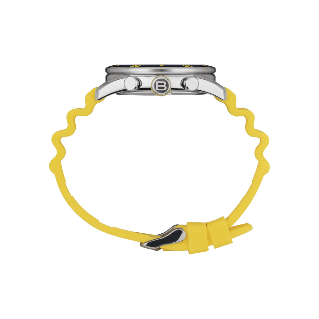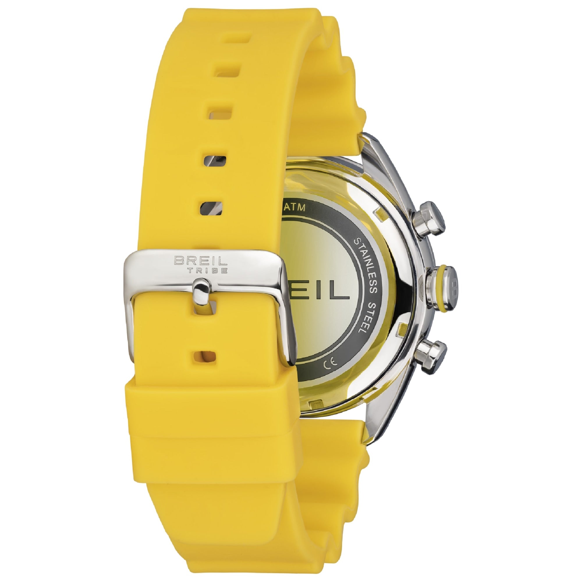 Il Breil Score unisce un design grintoso a prestazioni affidabili. Il preciso movimento cronografico al quarzo assicura una misurazione puntuale del tempo, supportando ogni attività quotidiana con efficienza e precisione. La resistenza all'acqua fino a 50 metri rende questo orologio perfetto per l'uso quotidiano e per le attività più dinamiche, mantenendo la sua affidabilità anche in presenza di umidità o schizzi. Il robusto vetro minerale protegge il quadrante da graffi e urti, assicurando lunga durata e mantenendo inalterata la bellezza dell'orologio. Il comodo cinturino in morbido silicone giallo, oltre a essere estremamente confortevole sulla pelle, è dotato di una pratica chiusura a fibbia che consente di regolare perfettamente la vestibilità in base alle esigenze personali.