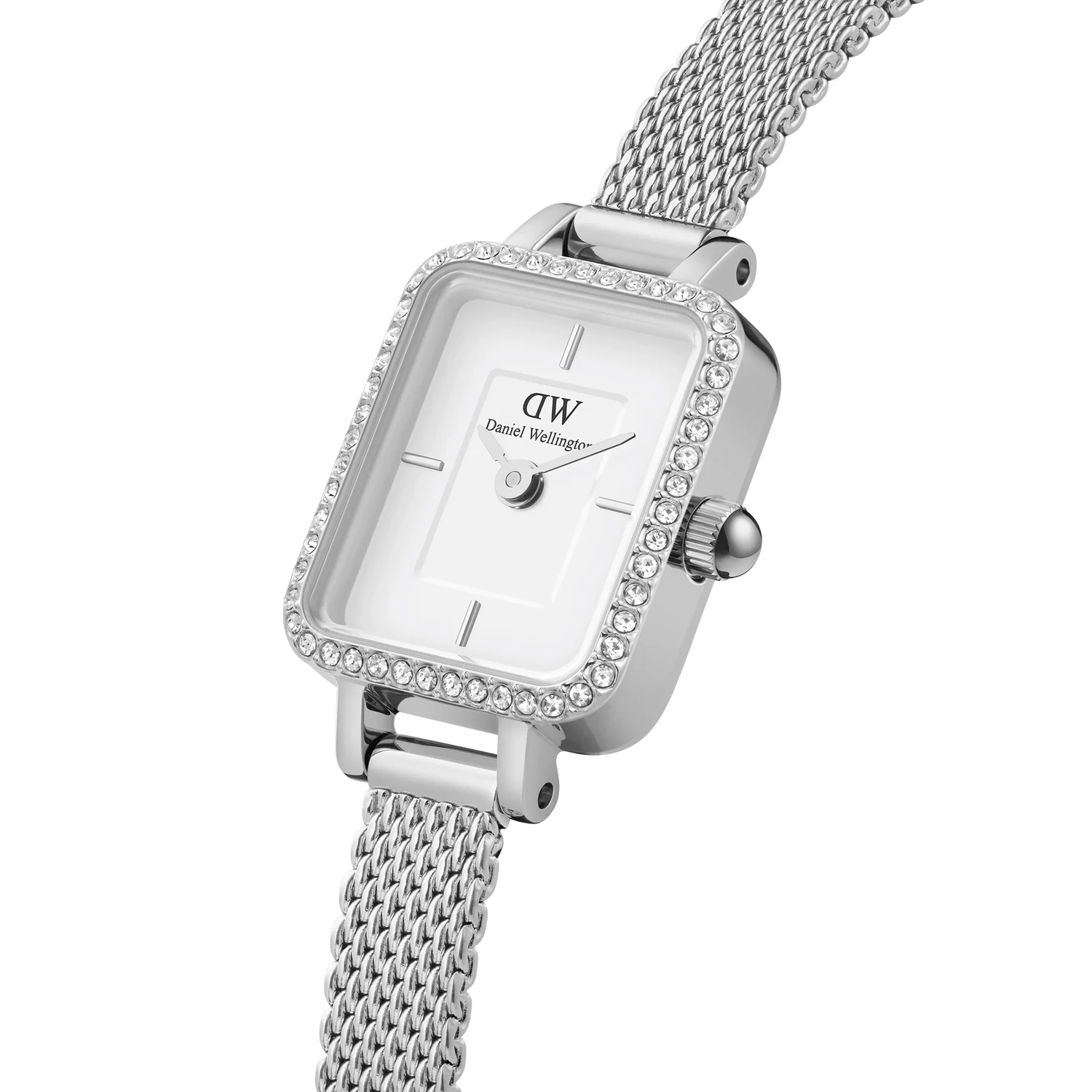 L’orologio Daniel Wellington Quadro Mini Lumine DW00100732 è una celebrazione della femminilità contemporanea. Pensato per chi ama i dettagli discreti ma sofisticati, è il più piccolo della collezione Quadro, e proprio per questo conquista con la sua delicatezza. La cassa ultrasottile da 6 mm e il quadrante bianco pulito sono valorizzati da una ghiera tempestata di cristalli incastonati con cura, che regalano una luce discreta e raffinata a ogni gesto. Il cinturino in maglia milanese color oro rosato aggiunge un tocco moderno e versatile, rendendo questo segnatempo ideale per ogni occasione, dal lavoro a un evento serale.
