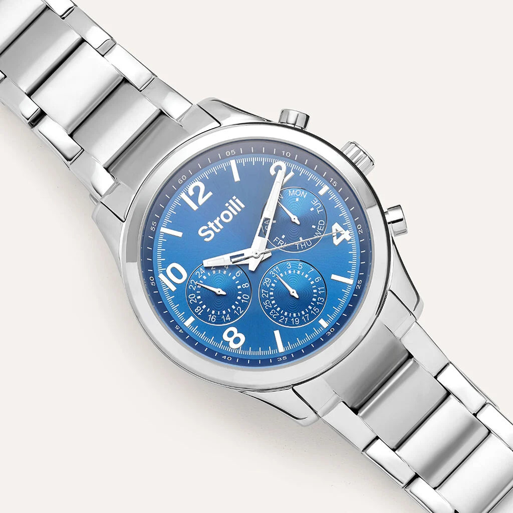 Orologio Al Quarzo Stroili Montecarlo Cassa Rotonda Acciaio Argentato 43 mm Quadrante Blu Cinturino Acciaio Argentato