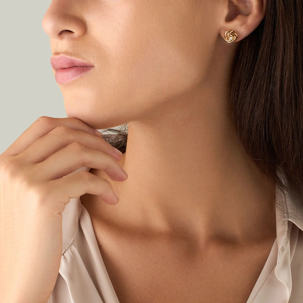 Gli Orecchini Lobo Golden Dream Placcato Oro Giallo sono il perfetto accessorio per aggiungere un tocco di lusso e raffinatezza al tuo look. Realizzati in placcato oro giallo, questi orecchini presentano un design ritorto che li rende unici e distintivi. Il Cubic Zirconia bianco, con il suo taglio brillante tondo, dona una lucentezza straordinaria, mentre la incastonatura a 4 griffe garantisce sicurezza e stabilità alle pietre, mettendole in risalto con eleganza.